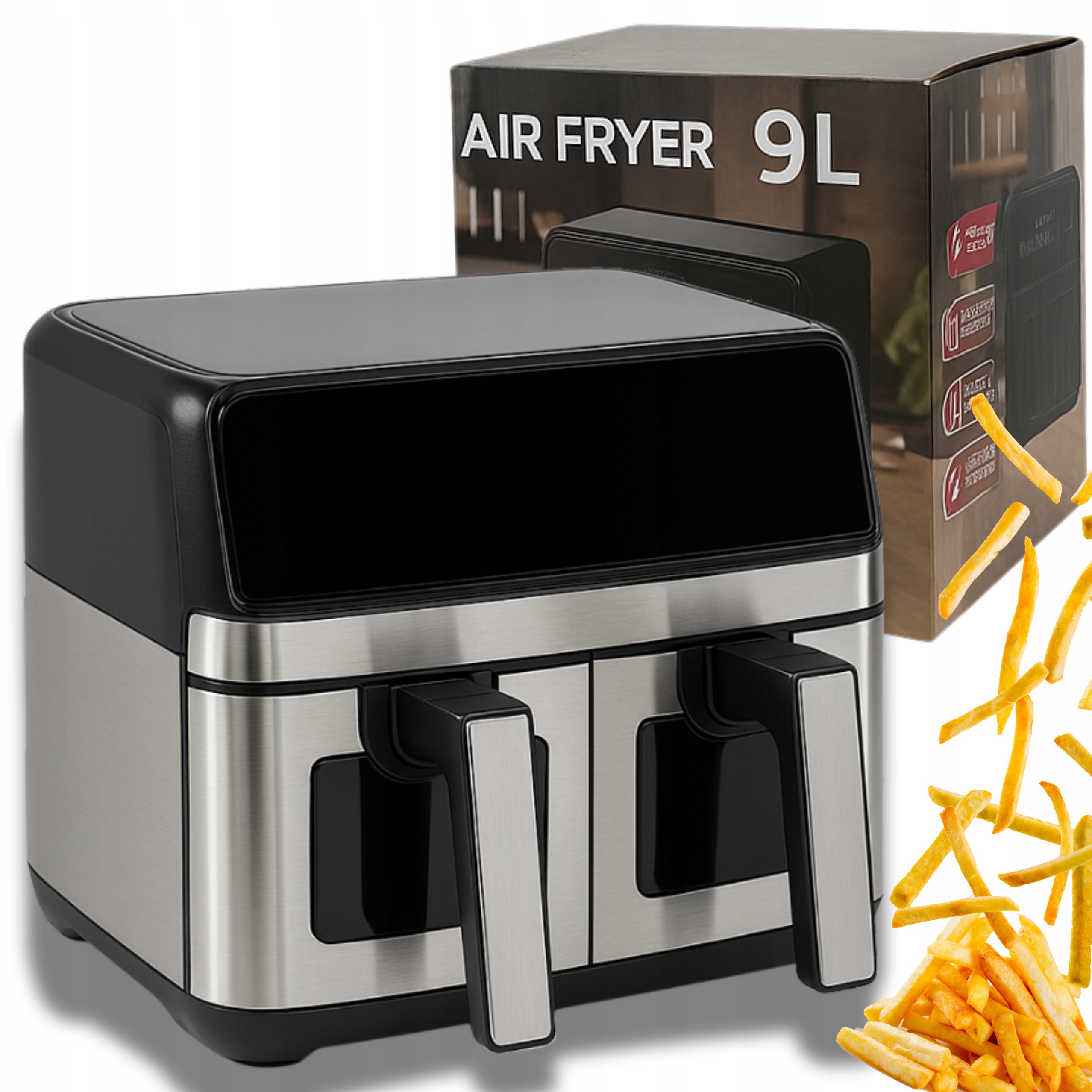 Сучасний фритюрниця, що не є, місткістю 2200 Вт, ємність 9L та дві незалежні камери -ідеальне рішення для всіх, хто цінує швидке, здорове та різноманітне приготування їжі. Завдяки цьому ви готуєте хрусткі страви без використання жиру - смачно та здорового!