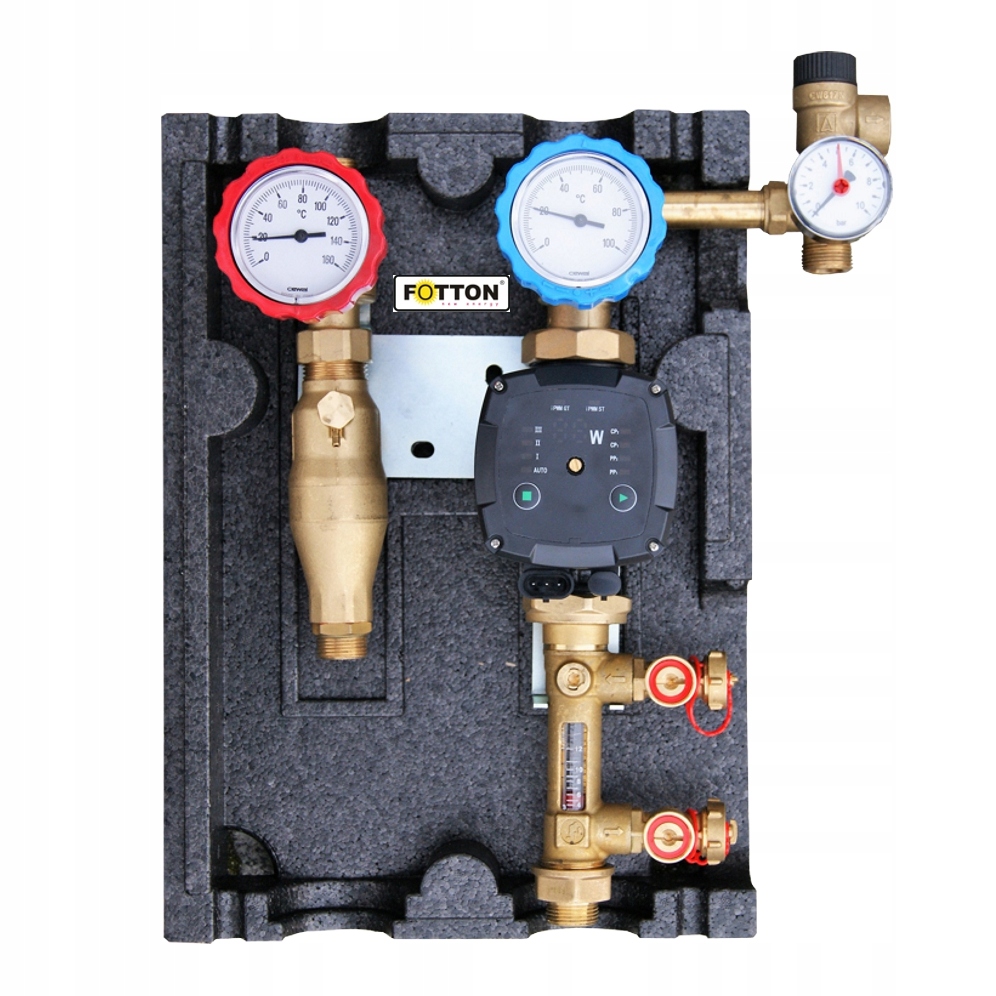 Група оснащена ротаметром, групою безпеки, сепаратором, вимірювачем тиску та температури . витрата 2-12л/хв. Робоча станція дозволяє виконувати всі гідравлічні налаштування, такі як вимірювання та регулювання витрати та видалення повітря з системи. Правильне налаштування установки забезпечує оптимальну роботу системи та максимальну економію енергії.