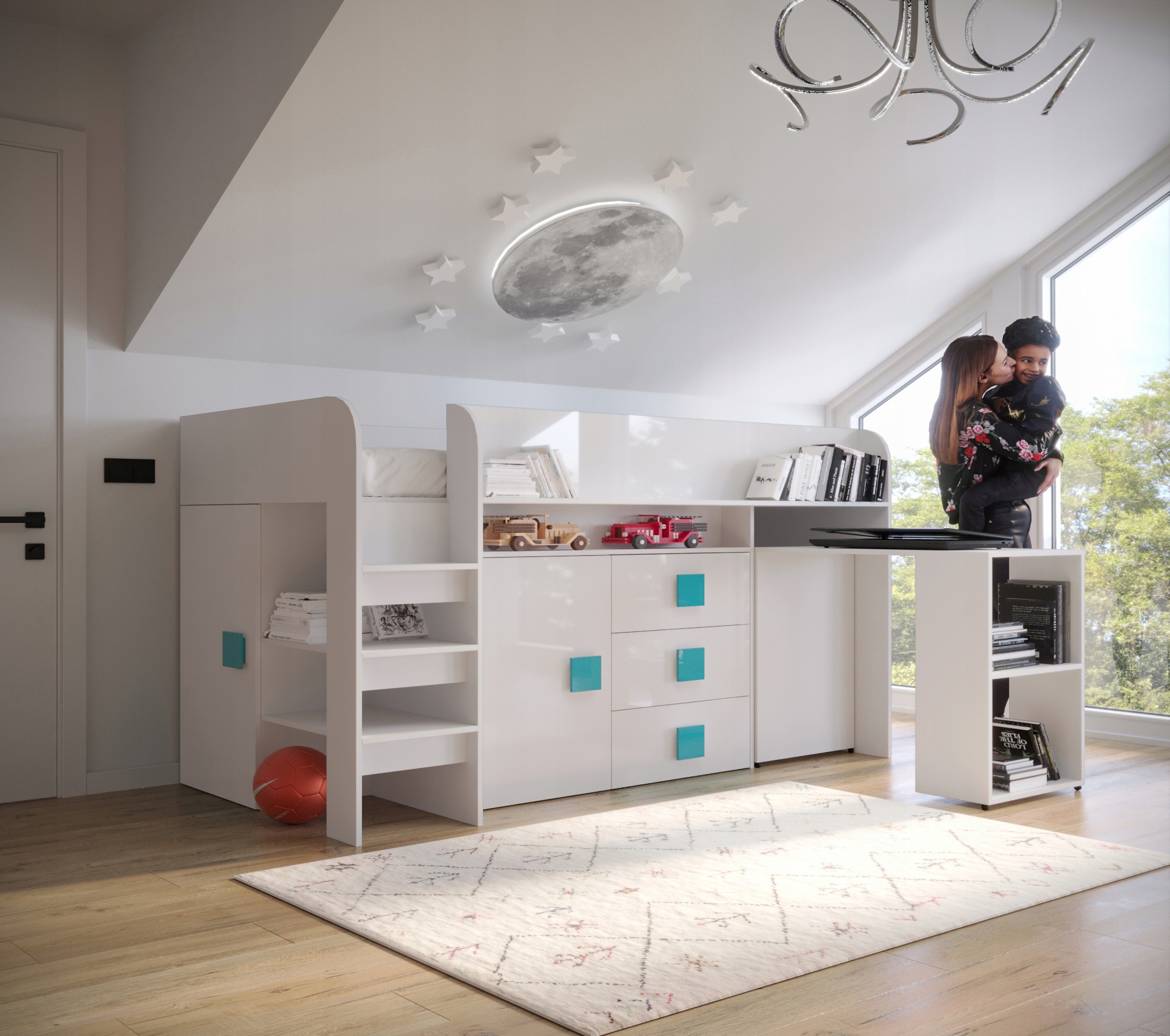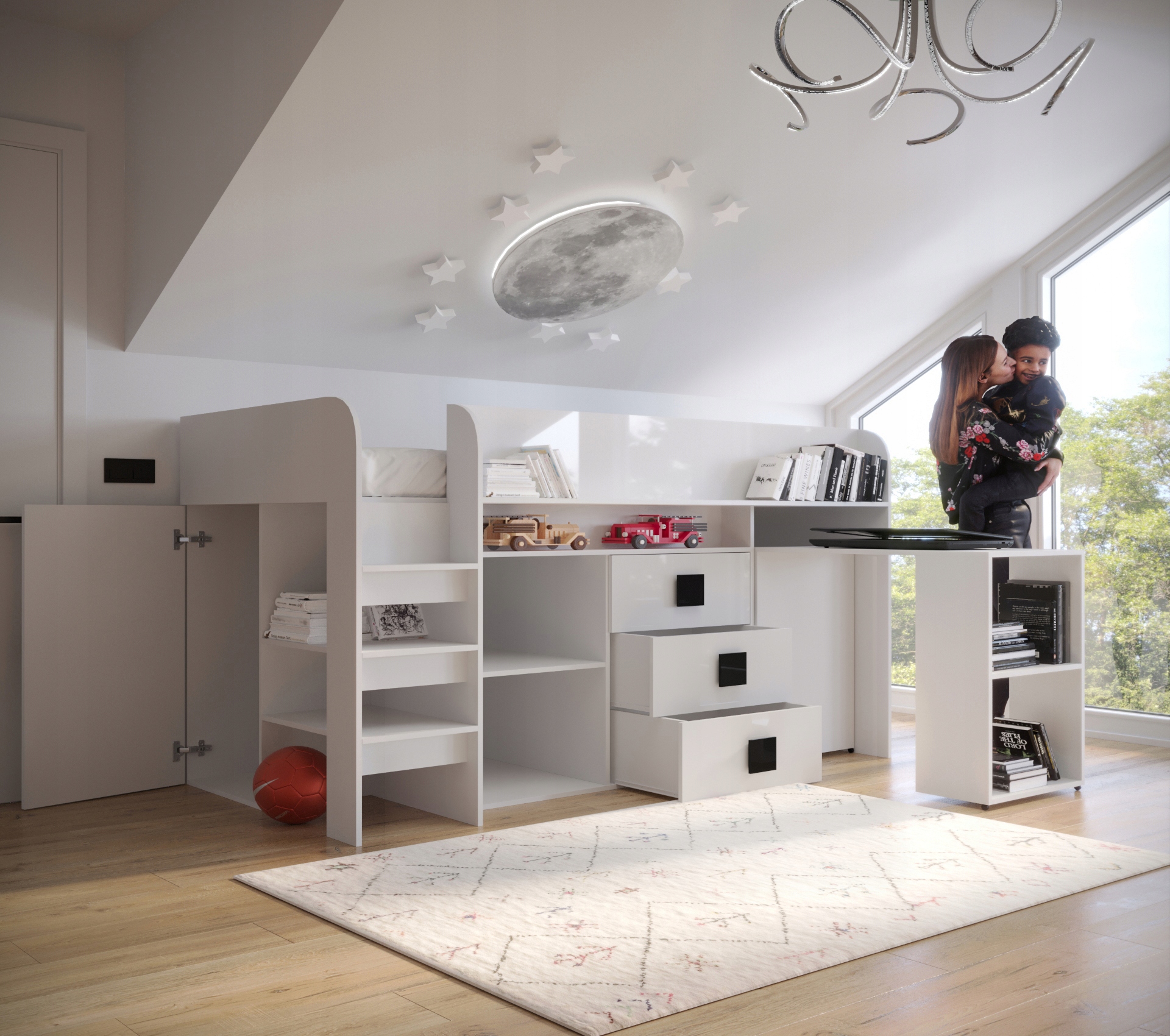 Двох'ярусне ліжко-антресолі, письмовий стіл, шафа, комод Т1