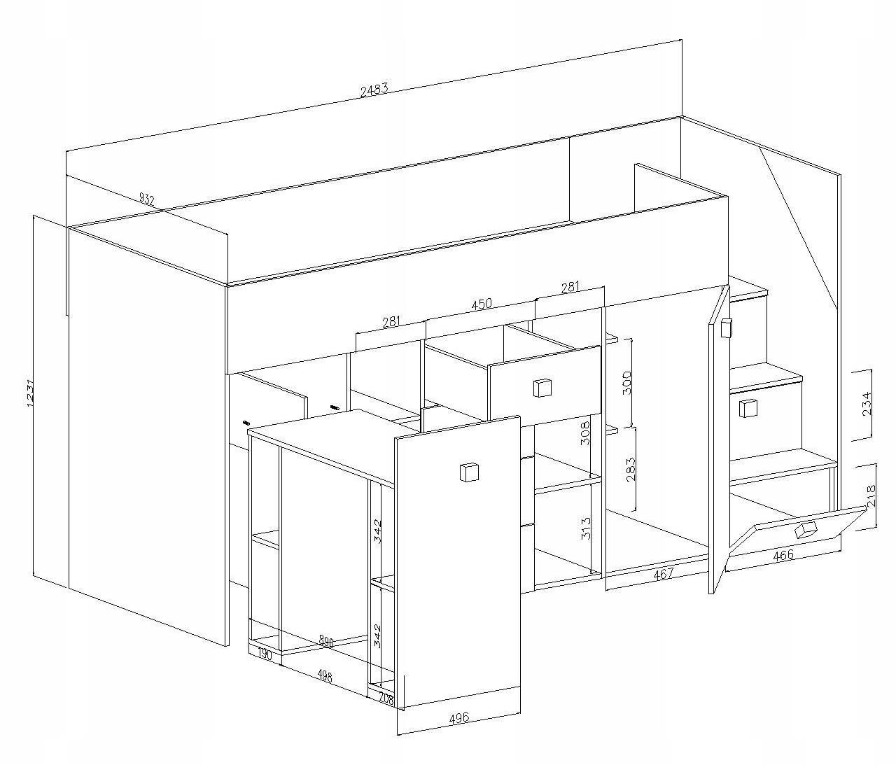 Двох'ярусне ліжко-антресолі з письмовим столом Т3
