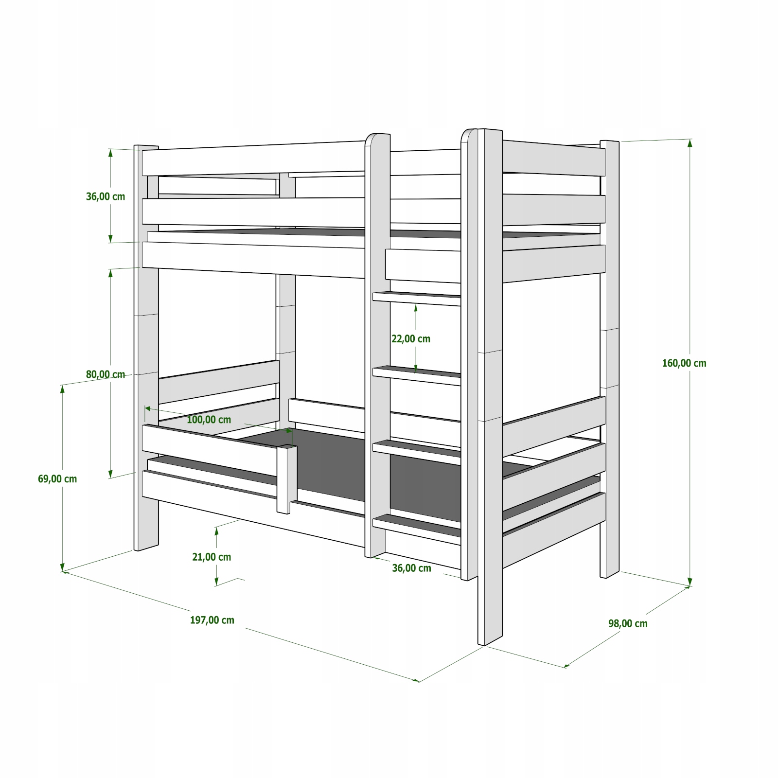 GAGATEK - двоярусне ліжко, повністю виготовлене з високоякісної деревини сосни. Він ідеально підходить для кімнати брата чи сестри, коли вам потрібно оптимально використовувати простір, який ділять ваші діти. Захисні дерев'яні перила захищають від падінь, а діти можуть безпечно та зручно підніматися по драбині з плоскими щаблями. Також можна використовувати GAGATKA як два окремих ліжка. Ліжко можна складати та розкладати багато разів без шкоди для його міцності та естетики