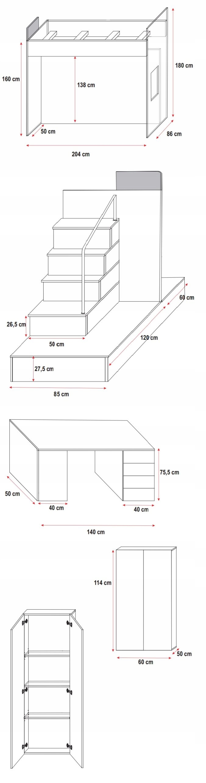 Ви шукаєте меблі, які поєднують чудовий дизайн із функціональністю та безпекою? Raj 5 - це ідеальний вибір - добре продуманий набір для дитячої кімнати, який пропонує все, що вам потрібно для навчання, ігор і сну - в одному, компактному рішенні!