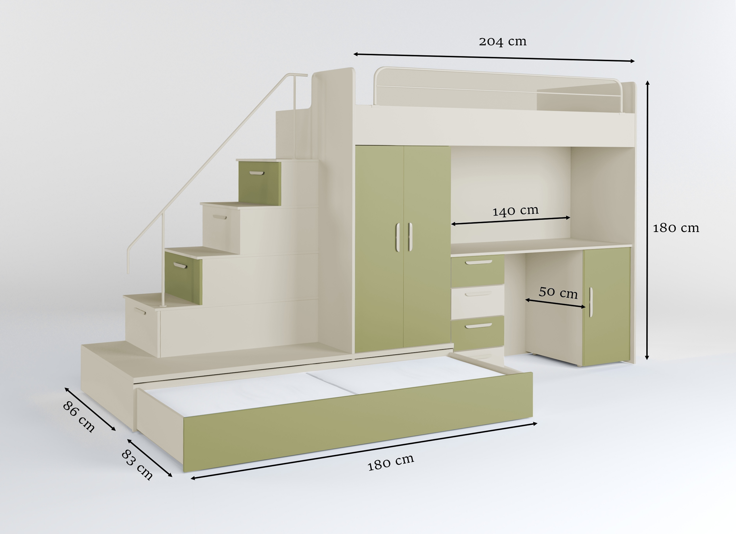 - Письмовий стіл, інтегрований у структуру - ідеально підходить для навчання, малювання чи творчих ігор.