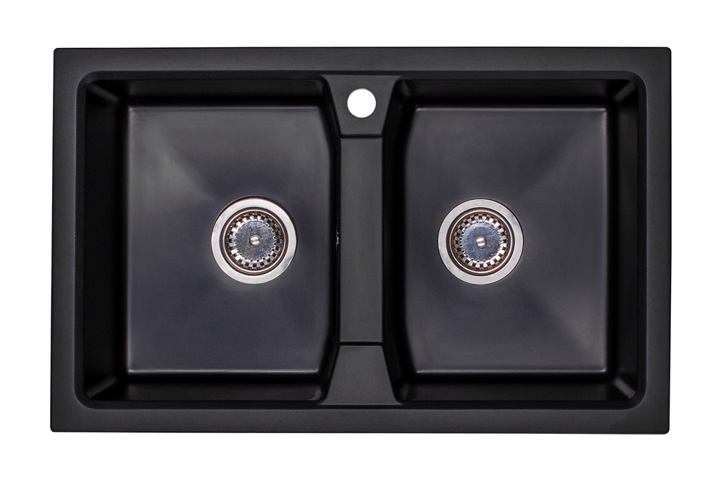 МИЙКА ДВОЧАШНА ГРАНІТНА, ЧОРНА + СИФОН