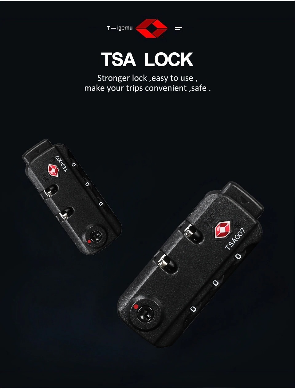 • Main pocket secured with a double lock