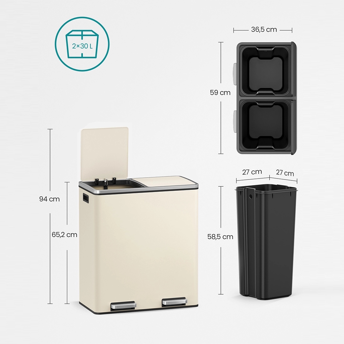 Кошик для сміття має дві камери -кожна ємністю 30 л.