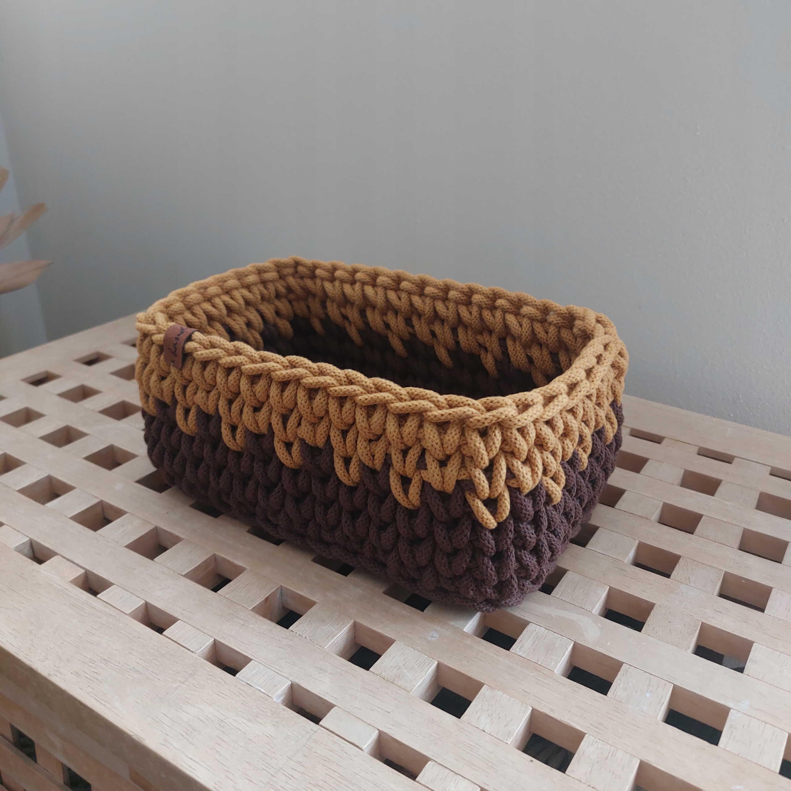 Я пропоную на продаж кошик з бавовняної нитки в кольорах шоколад і гірчиця