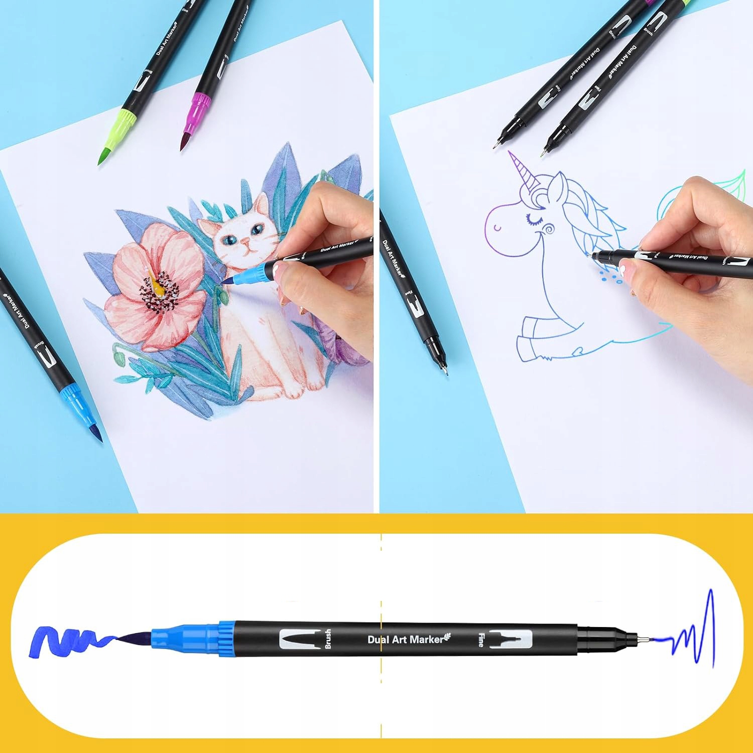 Яскраві кольори: 120 відтінків. Високоякісне чорнило на водній основі плавно розподіляється для отримання блискучих кольорів без розмазування. Яскраві кольори цього набору маркерів надихають на художню творчість завдяки легкому накладанню шарів і змішуванню кольорів. Наші ручки ідеально підходять для художніх робіт, таких як ілюстрації тварин, квіткові орнаменти, візерунки,