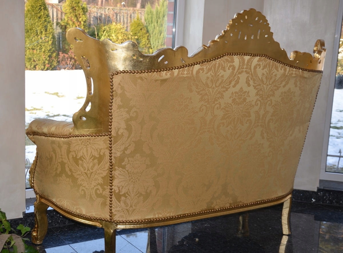 Двоє -особисто -диван Людвік у стилі гламуру виготовлений з хорошої якості, різьбленої та золотистої деревини.