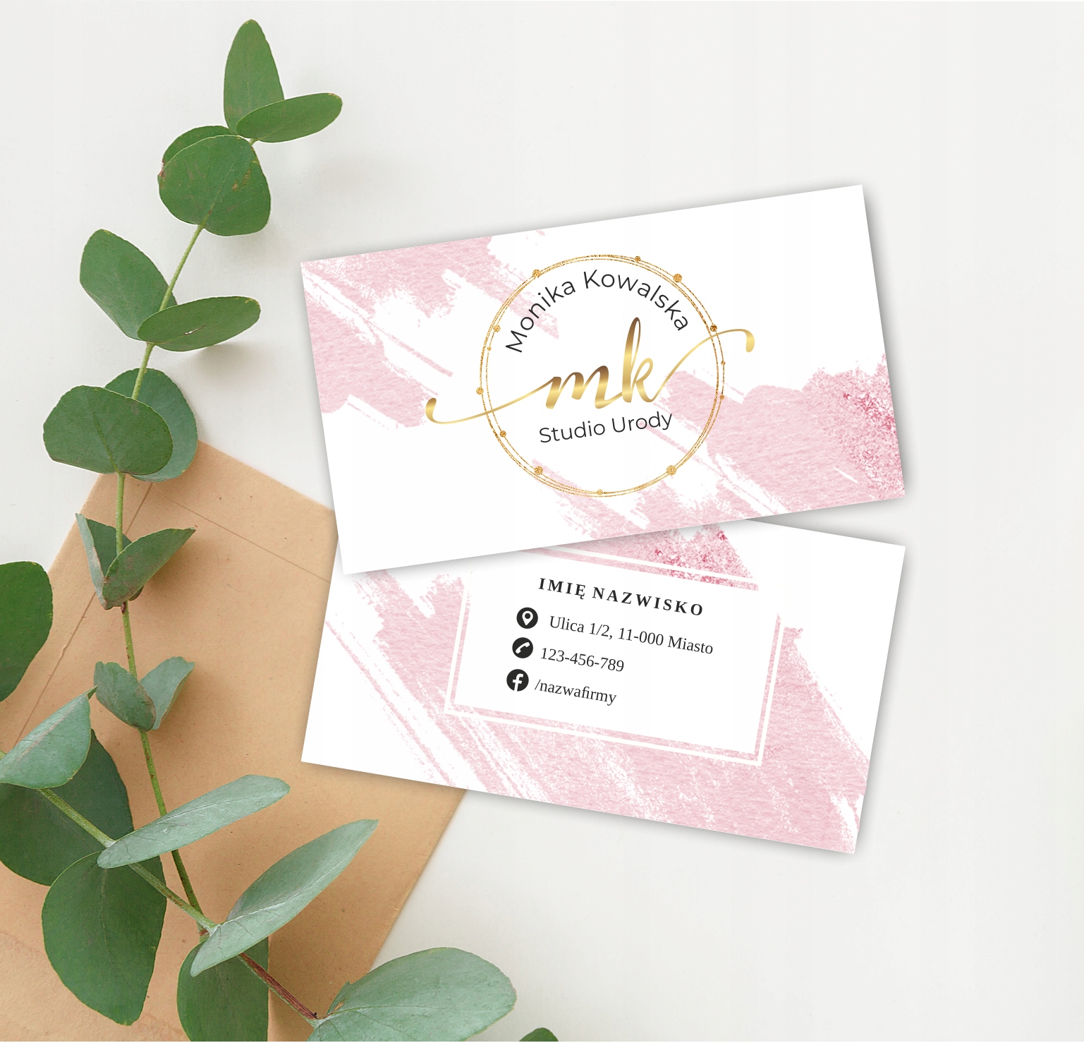 Красиві подвійні візитні картки з рожевим абстрактним малюнком.