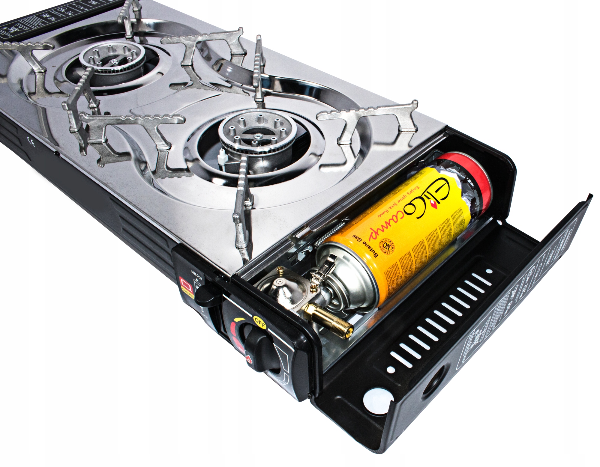 Портативна плита оснащена дуже міцними газовими пальниками з потужністю, еквівалентною 2,5 кВт на пальник, що дозволяє закип’ятити 0,5 літра води менш ніж за 3 хвилини! p>