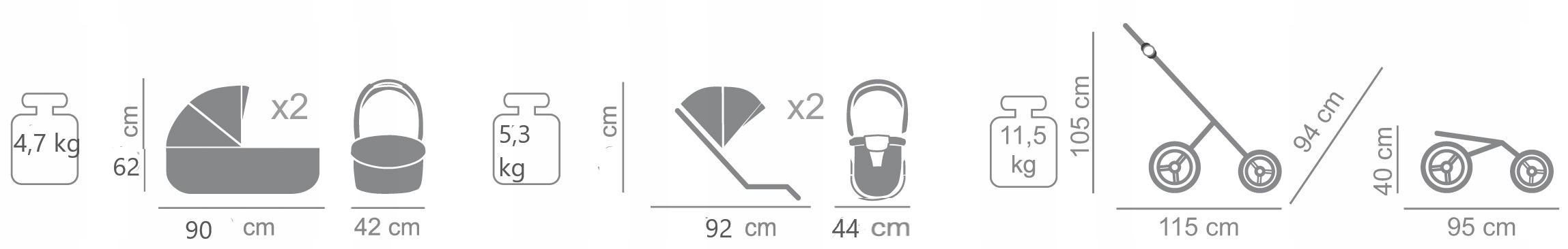 Багатофункціональна коляска для двійні Junama Fluo Line Duo 4 в 1 містить: