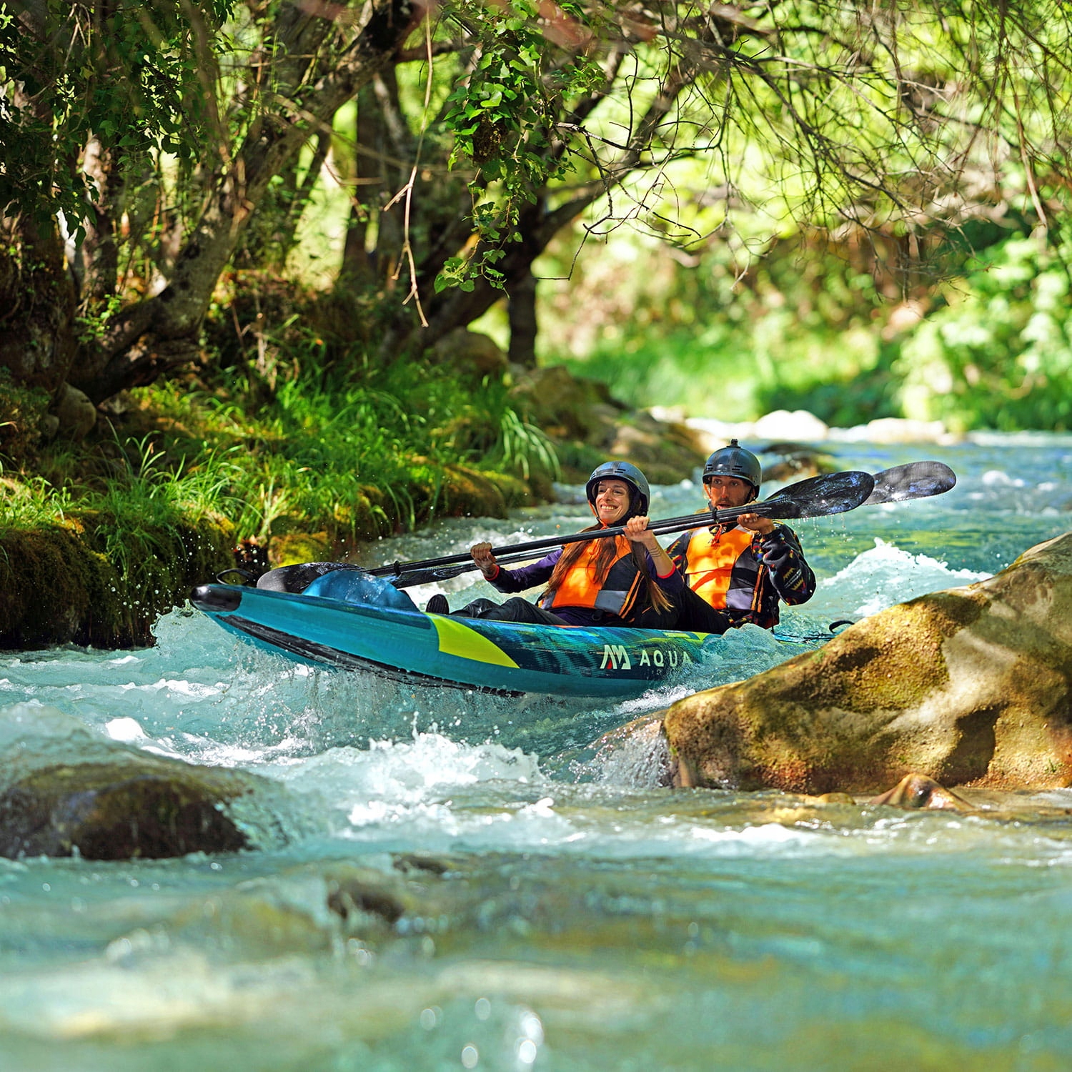 Aqua Marina Steam 412 — це надувна байдарка для двох осіб, розроблена та створена для більш досвідчених користувачів, які планують сплав по річках підвищеного рівня складності. Steam — це вдосконалена версія базової моделі Betta. Найважливіший елемент, на який варто звернути увагу - це аварійні виходи зі спеціальними клапанами, які розміщені на дні каяка. Завдяки їм ви зможете швидко і легко видалити зайву воду з внутрішньої частини каяка під час плавання. Крім того, носова частина байдарки була спеціально посилена, щоб звести до мінімуму можливість механічних пошкоджень.