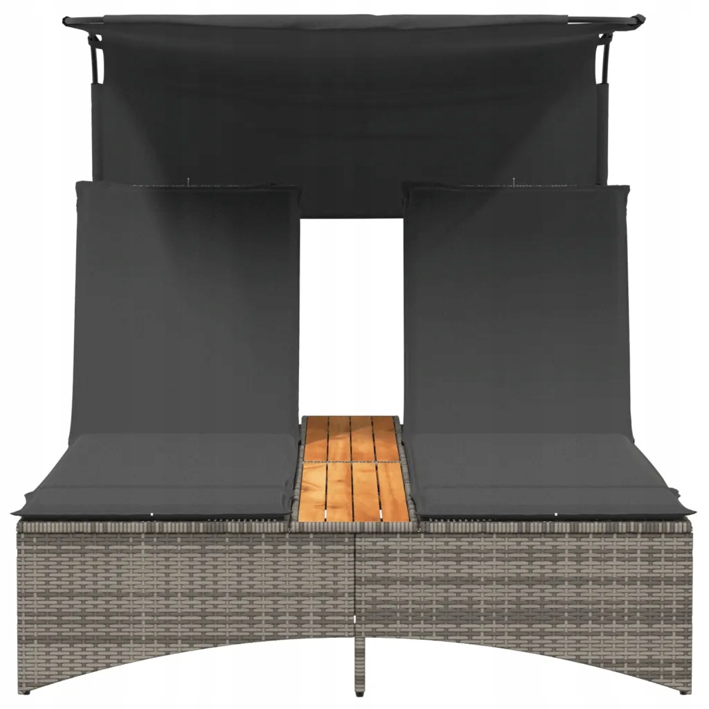 Двомісний шезлонг з балдахіном - сірий, ПЕ ротанг, 136x202x140 см