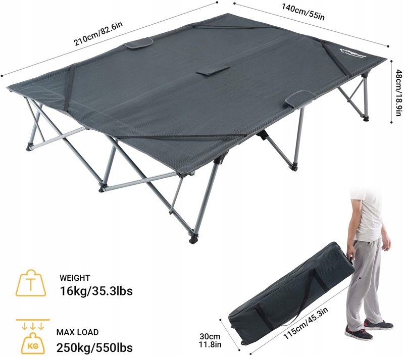Складний шпилька (ліжко) для 2 людей з провідного виробника кемпінгу Кінг табору. надзвичайно суцільна рама і швидка складання завдяки складним ногам. зміцнено конструкцію для збільшення вантажопідйомності.