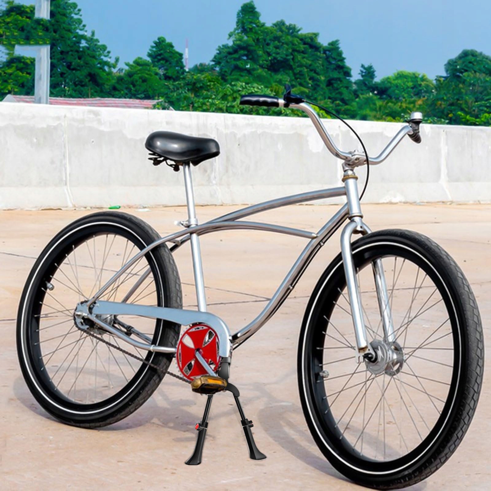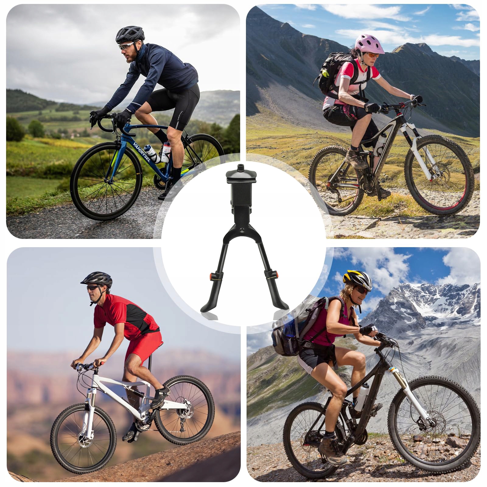 Двоєногій підставці можна легко відрегулювати до висоти від 35 до 40 см , без додаткових інструментів, натискаючи кнопку. Пристосований до міських та поза дорогою велосипедами, щоб забезпечити високу сумісність та придатність до широкого спектру велосипедів.