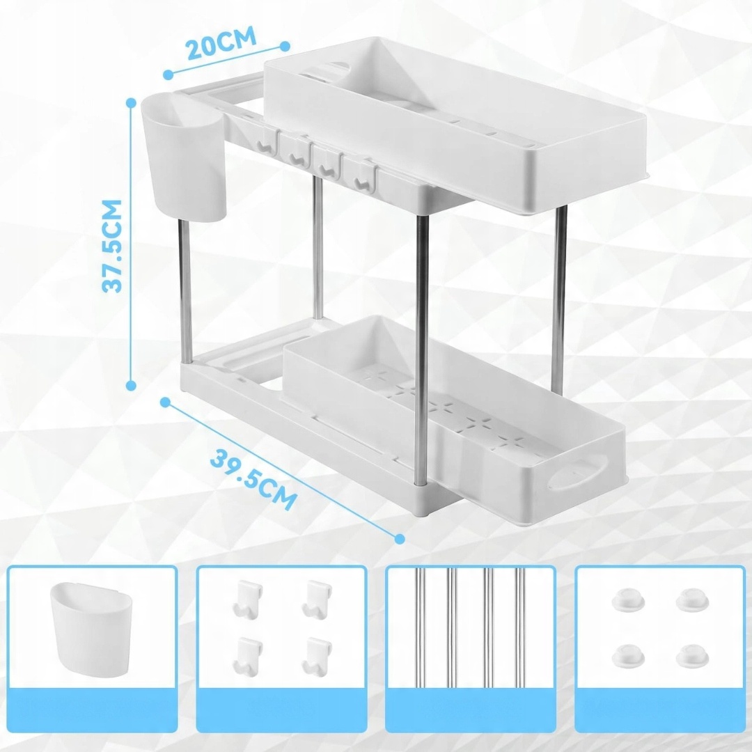Організатор для мийки з ящиками - -це двостороння структура, яка дозволяє ефективно використовувати простір у шафі, полегшуючи доступ до збережених предметів.