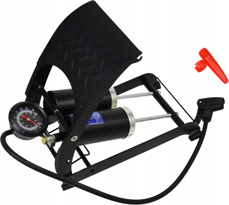 Універсальний ножний насос, висока ефективність завдяки використанню двох поршнів. Незамінний в автомобілі та в кожному домі.