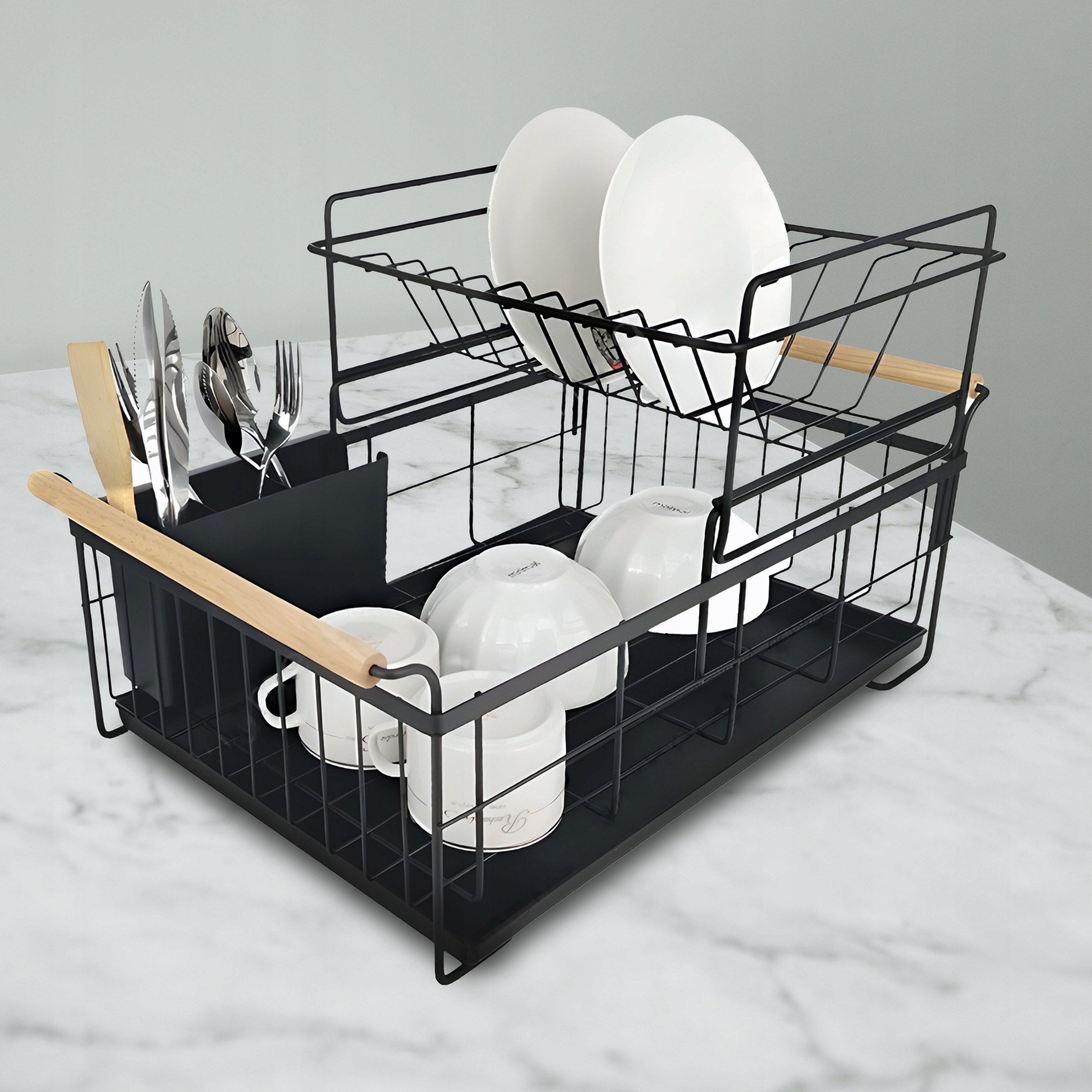 ДВОРІВНЕВА СУШКА ДЛЯ СУШІННЯ ПОСУДУ З ПІДНОКОМ, ВЕЛИКИЙ ЧОРНИЙ