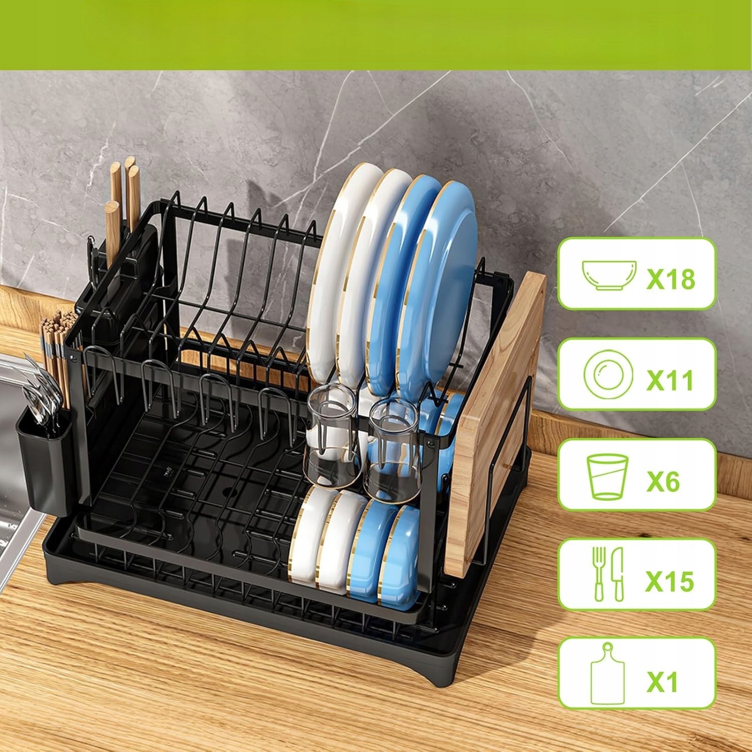 ДВОРІВНЕВИЙ СІЧОК ДЛЯ СУШІННЯ ПОСУДУ, ТАРІЛКИ, СТОЛОВІ ПРИБОРИ + ТРИМАЧ ДОСКИ