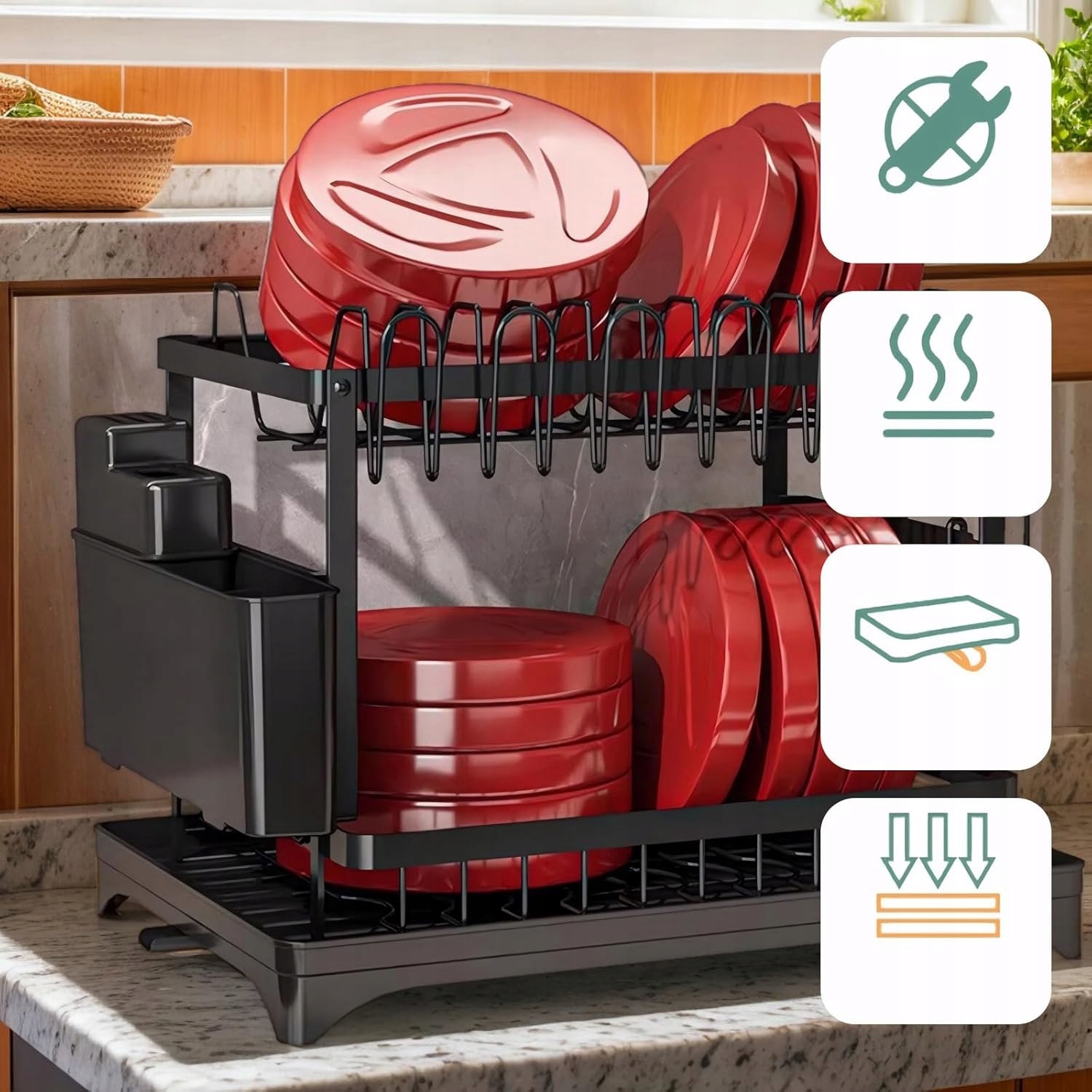 ДВОРІВНЕВЕ СУШІННЯ ДЛЯ ПОСУДУ ТАРІЛКИ СТОЛОВІ ПРИБОРИ ДЛЯ БРАДА Чорний