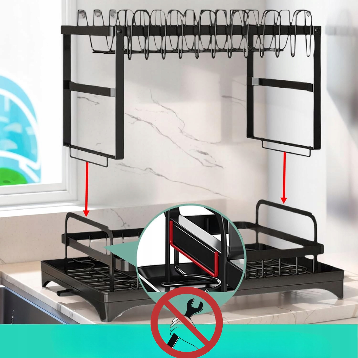 ✅Сушка для посуду характеризується дуже високою якістю та міцною та металевою конструкцією. Смоляний піддон захищає стільницю від намокання. У комплект також входить пластикова сушарка для столових приборів. Чорна металева сушарка – це елегантне рішення для кожної кухні.