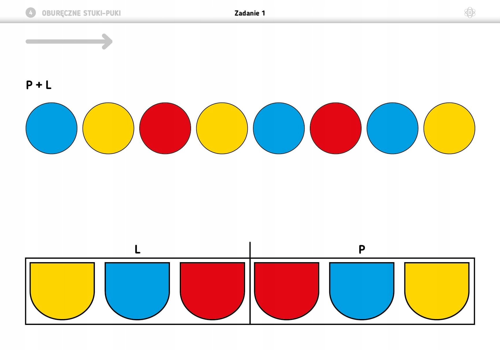 Вправи, що входять до цієї книги, мають руховий характер. Завдання дитини полягає в тому, щоб побити барвисті "клавіші", розміщені внизу коду коду, що складається з барвистих точок, наведених у верхній частині сторінки. Найпростіші завдання складаються з трьох кольорів, найскладніших -семи забарвлених. Зі збільшенням ступеня складності фізичних вправ тривалість коду також змінюється.