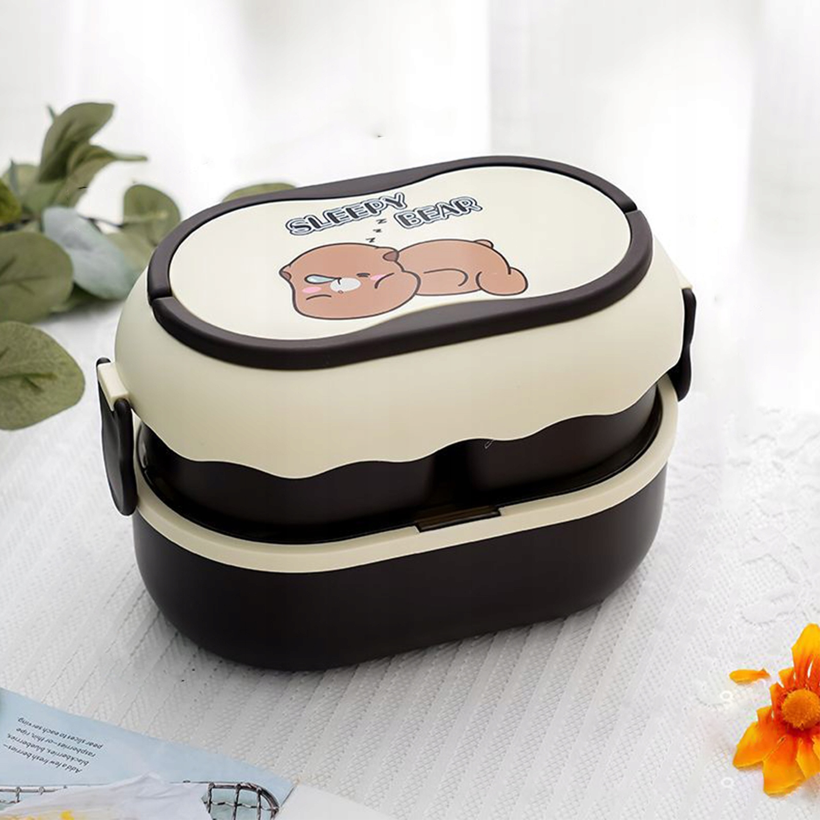 Двошарова універсальна коробка Bento з 3 відділеннями Cute Portable Lunch Box зі столовими приборами для шкільного офісу 1600 мл Cute Brown