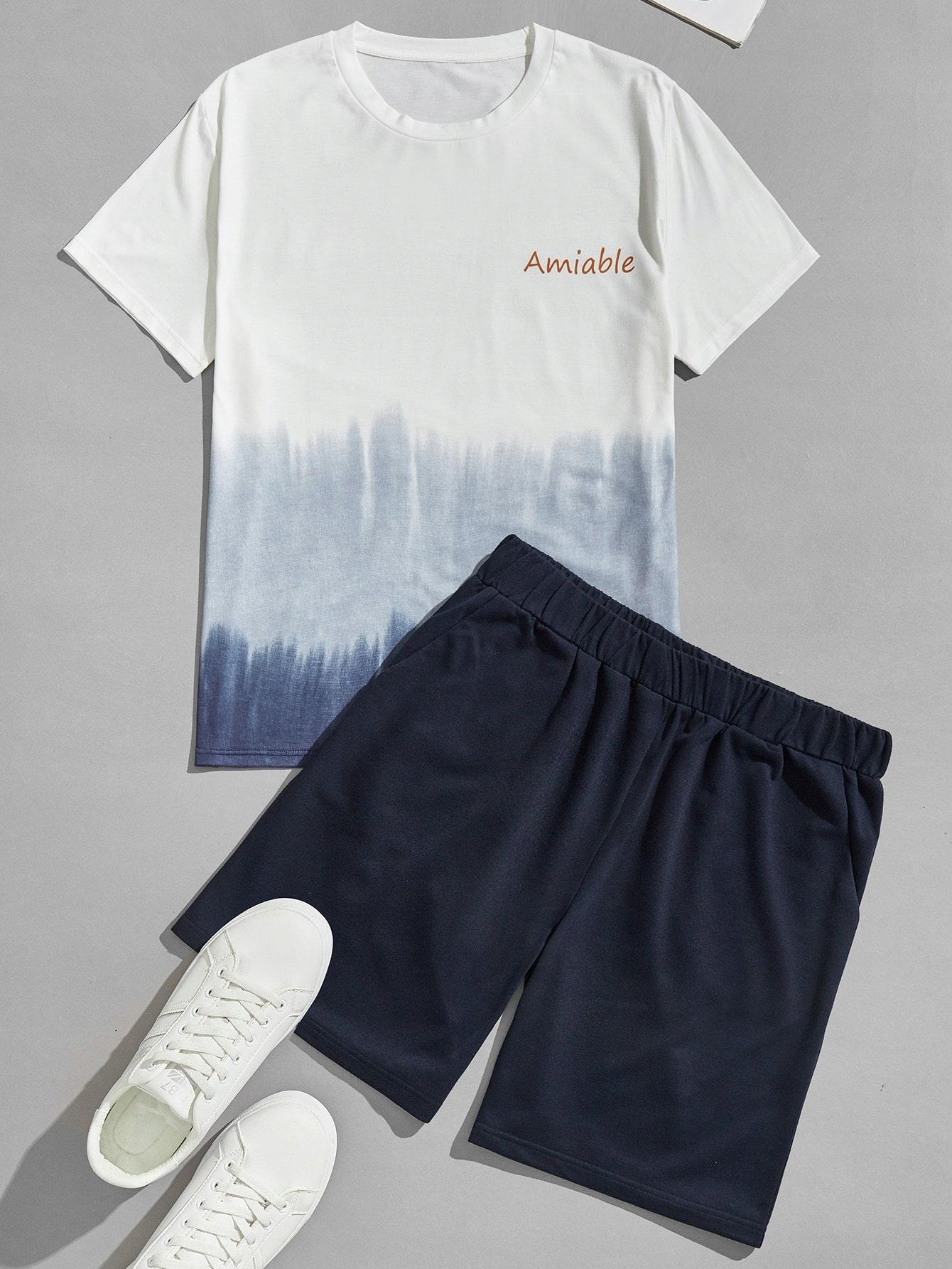 Двоскладовий набір біла футболка темно-сині поті шорти Shein l
