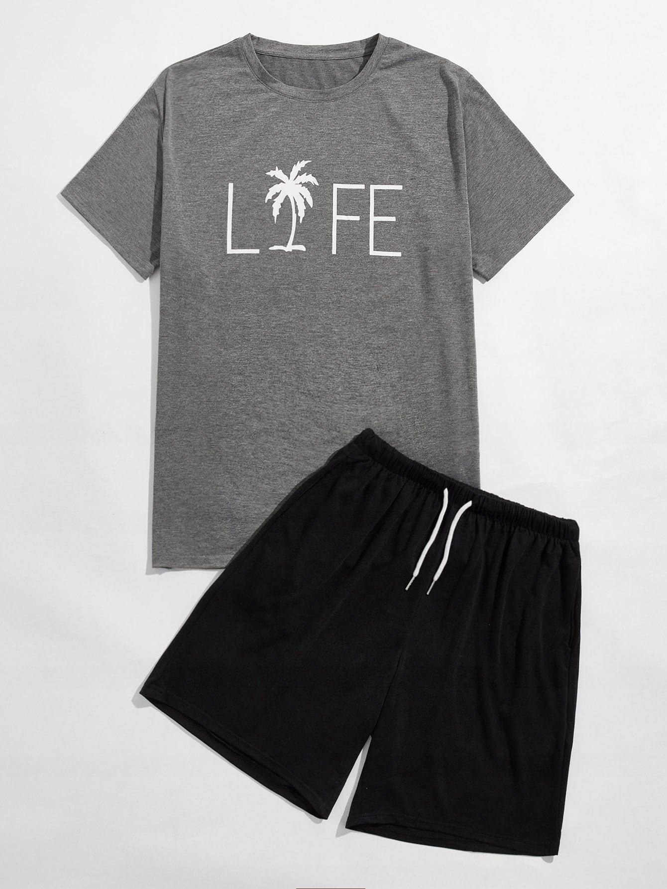 Двоскладовий набір сірий напис футболки Чорний Шорт-костюм Shein M