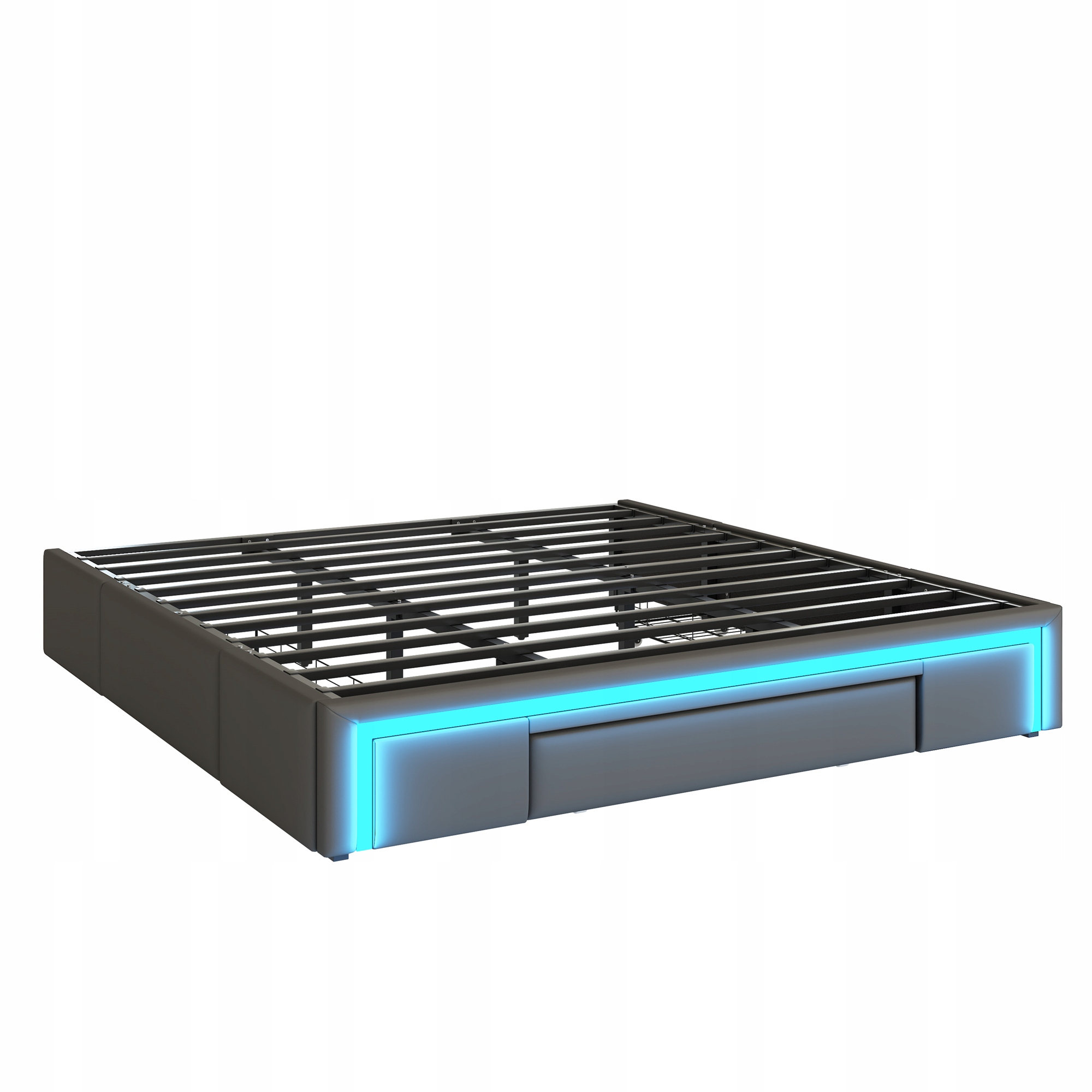Каркас ліжка 180X200 з висувними ящиками, ліжко PU шкіра без узголів'я зі світлодіодною стрічкою, ліжко металева платформа з ламелями для сучасних спалень сірого кольору