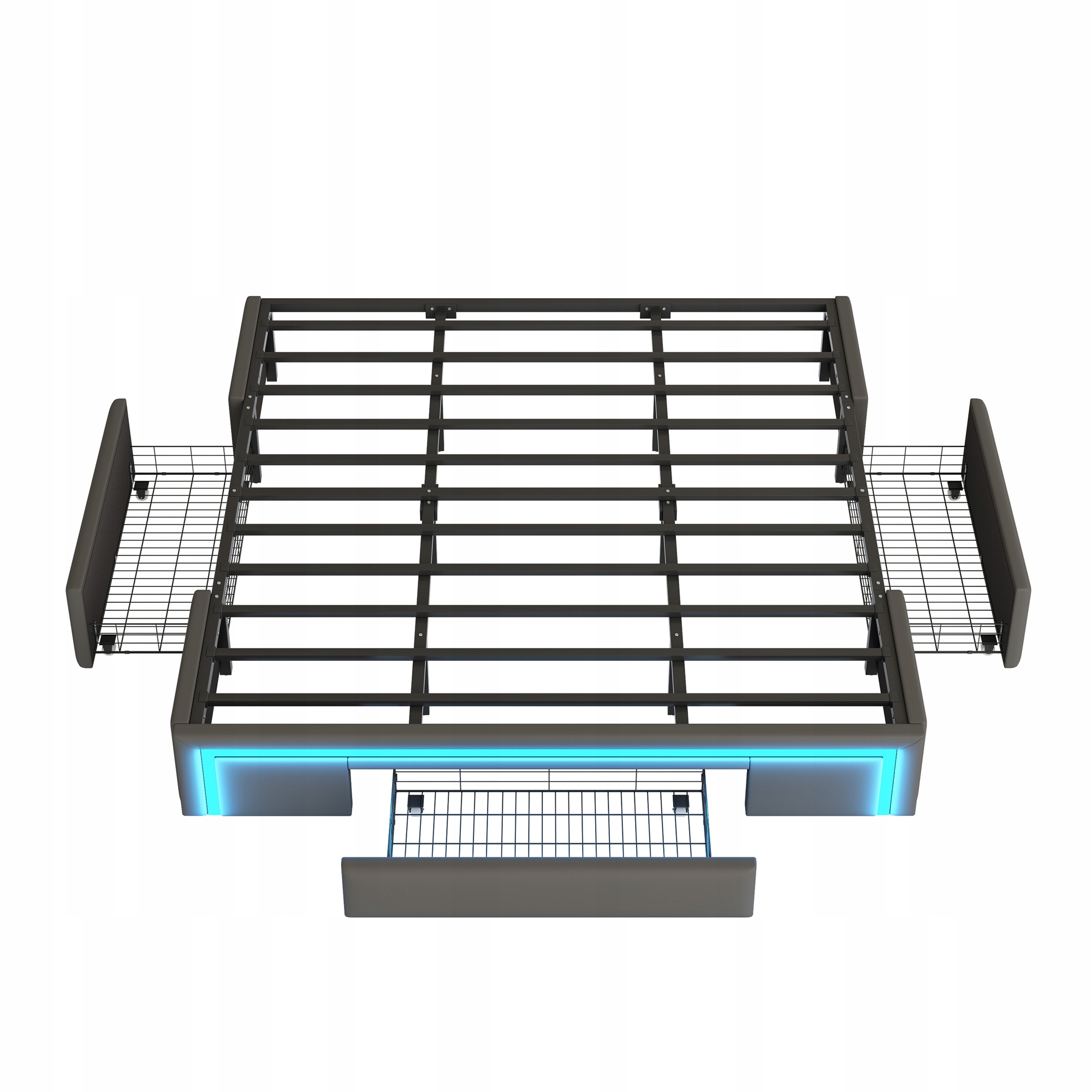 Двоспальне ліжко 180X200 LED ящики Без узголів'я Металеві смуги сірі
