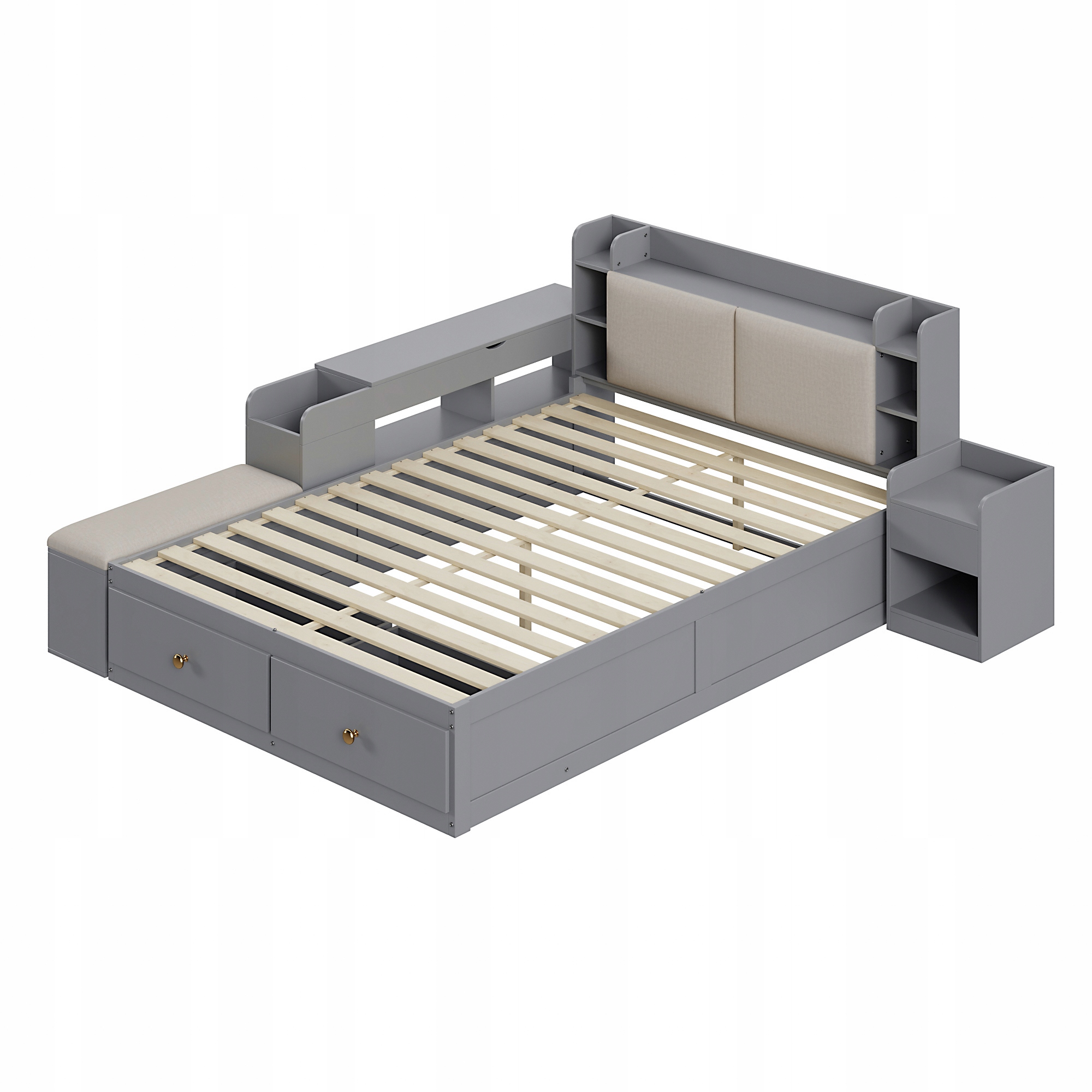 Ліжко комбіноване з масиву 140*200 см, узголів'я з вбудованим ящиком, з висувними ящиками, з тумбочкою, з довгою шафою, з диваном-лавкою, ліжко з ящиком, двоспальне ліжко з ящиком, ліжко татамі, сірий