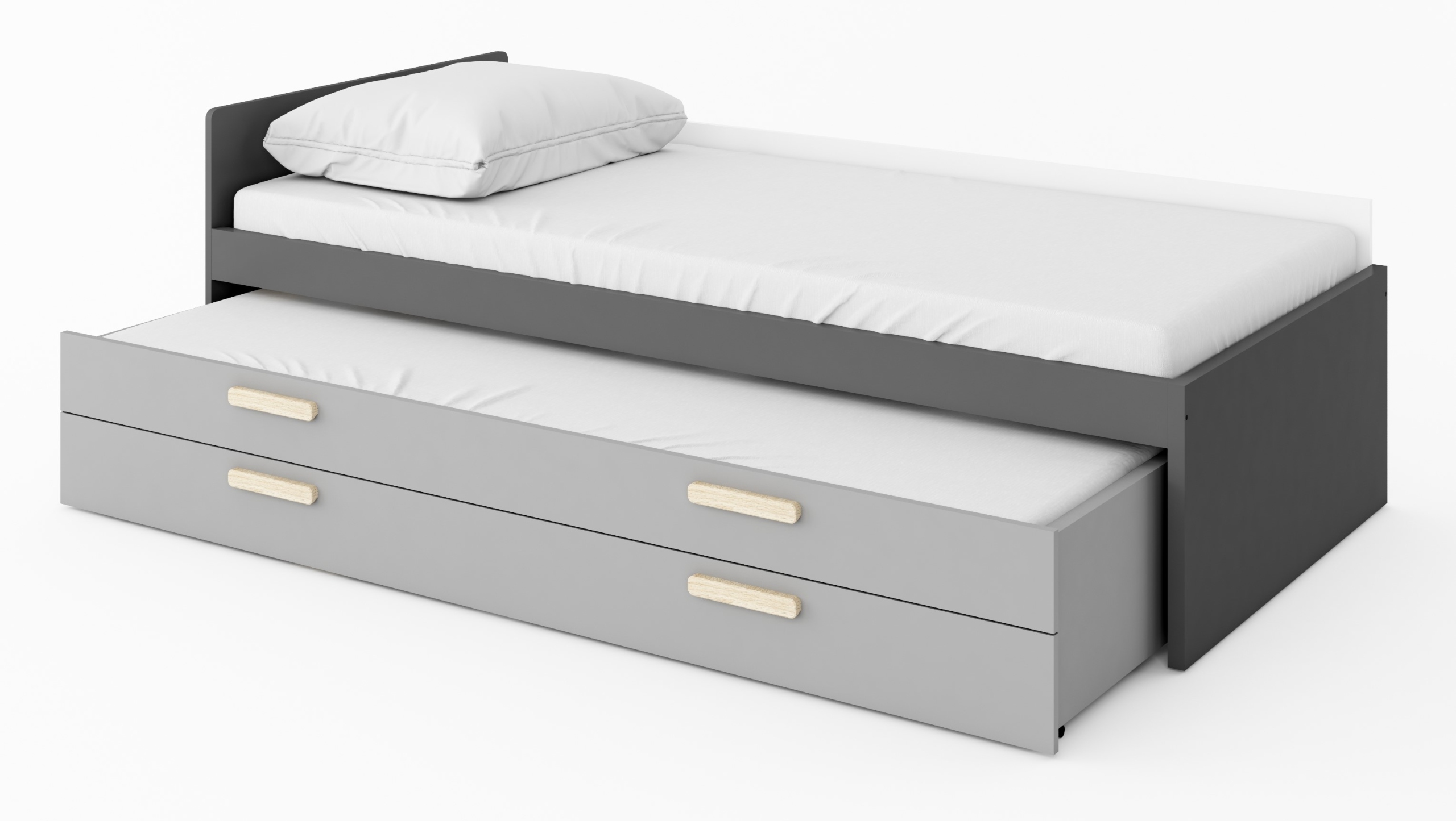 Функціональна модель ліжка 2 в 1 укомплектована матрацами - верхній bonell, нижній поролоновий і місткий нижній ящик на колесах.