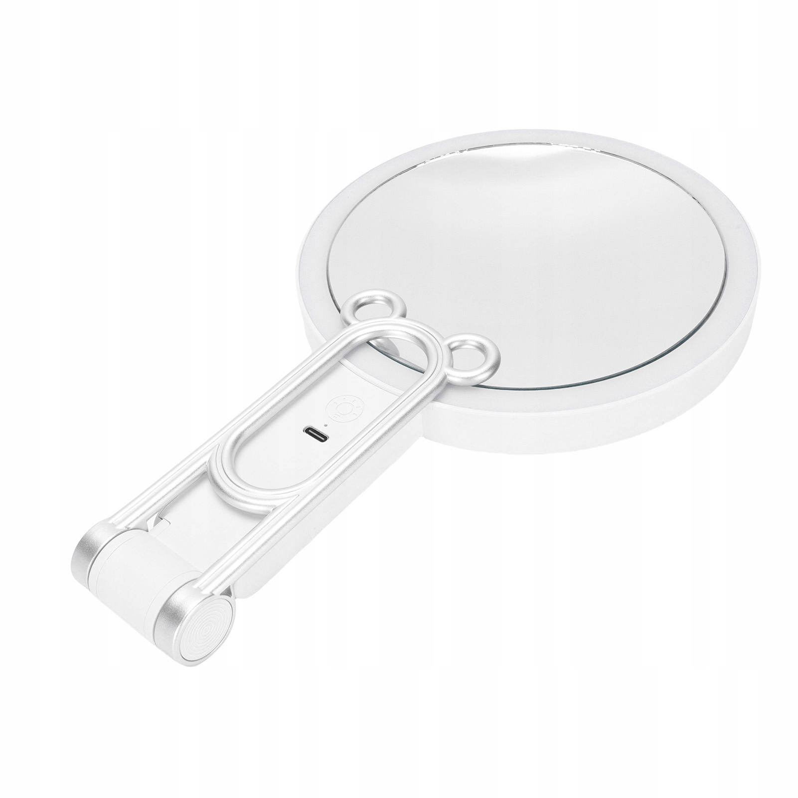 2. Гнучка ручка: це дзеркало з підсвічуванням має універсальну складну ручку, яка адаптується до ваших потреб. Його можна легко повісити на стіну, розмістити на столі чи використовувати як ручне дзеркало, забезпечуючи гнучкість для будь-якого налаштування.