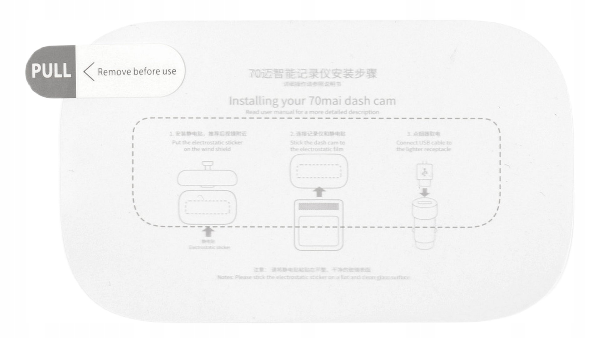 Додатково 1x Electrostatic Sticker, наклейка для встановлення камери 70mai a400