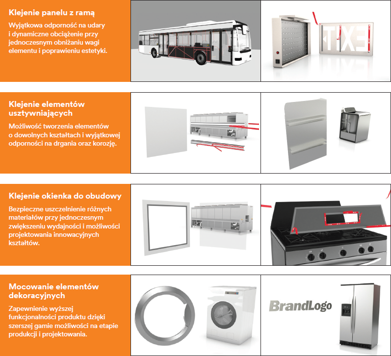 Стрічки 3M VHB пропонують виробникам значну перевагу, забезпечуючи розподіл напруги вздовж усього з’єднання та надійне та міцне з’єднання склеєних поверхонь. Чудові параметри підключення також дозволяють виробу виглядати естетично. Властивості стрічок серії 3M VHB роблять їх ідеальними для застосування в металообробній промисловості, а також для виготовлення обладнання, вивісок і транспортних засобів.