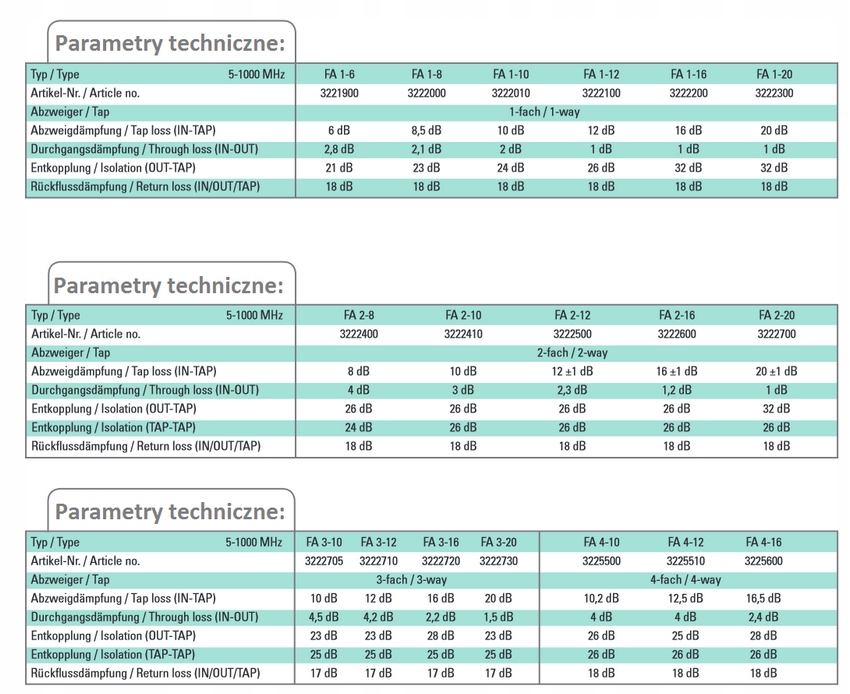 POLYTRON TAP FA 2-16 2-TIME 16 dB 5-1000 MHz характеризується високою якістю виконання.