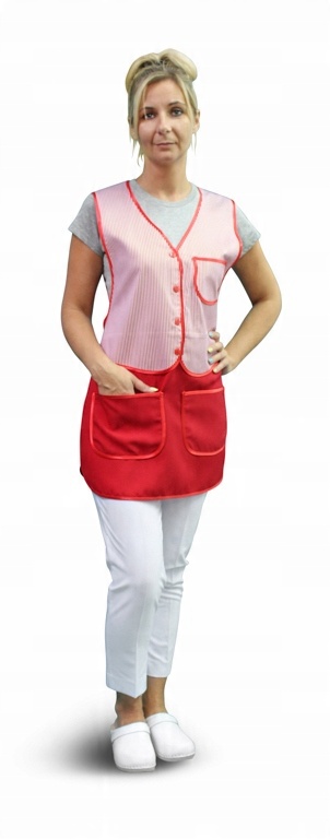 Фартух має три кишені - одну меншу на грудях і одну на грудях, дві більші з боків. Дана модель одягається через голову і зав'язується ззаду, що гарантує повний комфорт при носінні. Ми підготували палітру з двох кольорів: чорний, червоний.