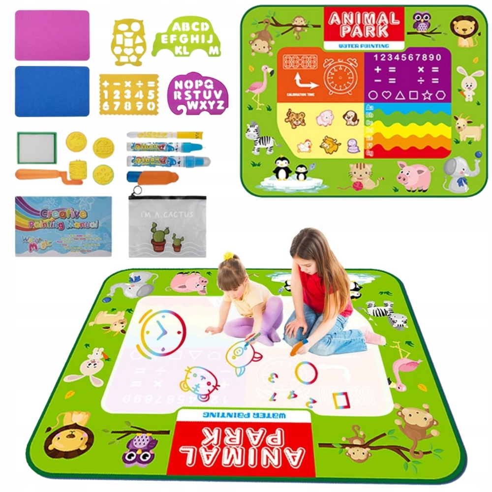 Навчальний водний килимок WOOPIE для малювання 2в1 XXL, двосторонні тварини