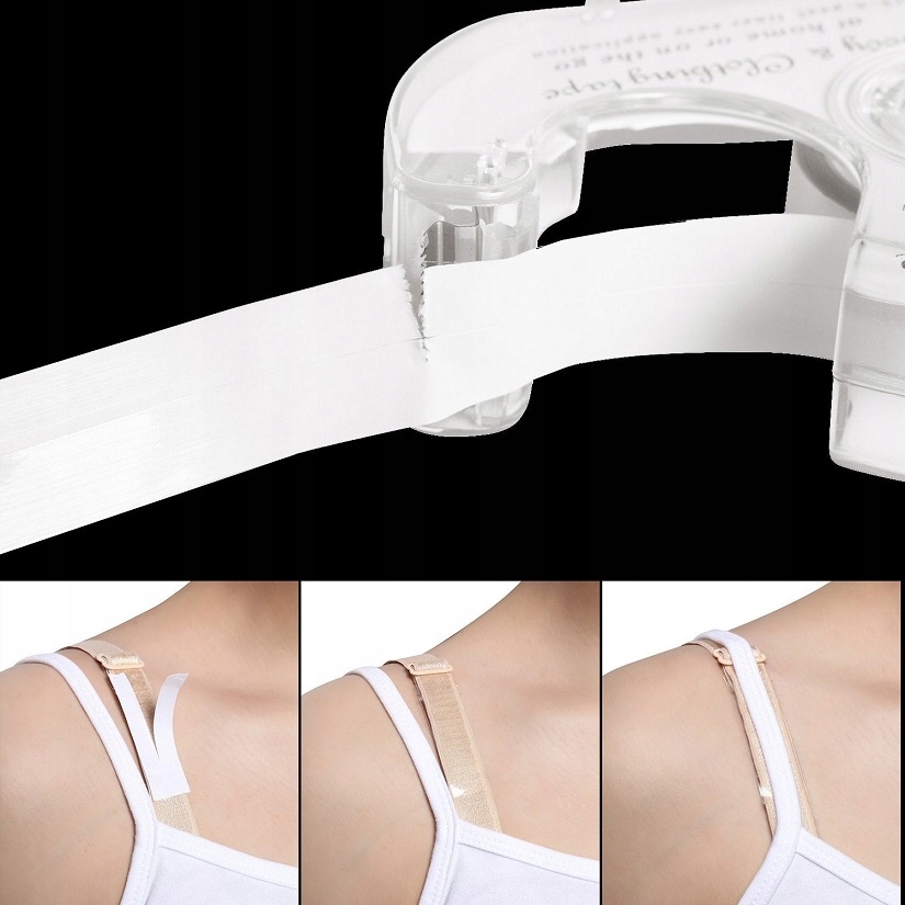 Двостороння клейка стрічка є ідеальним рішенням для одягу з великими декольте та вирізами. Також рекомендується для елегантних сорочок на ґудзиках, де матеріал часто відкривається та видно оголене тіло.