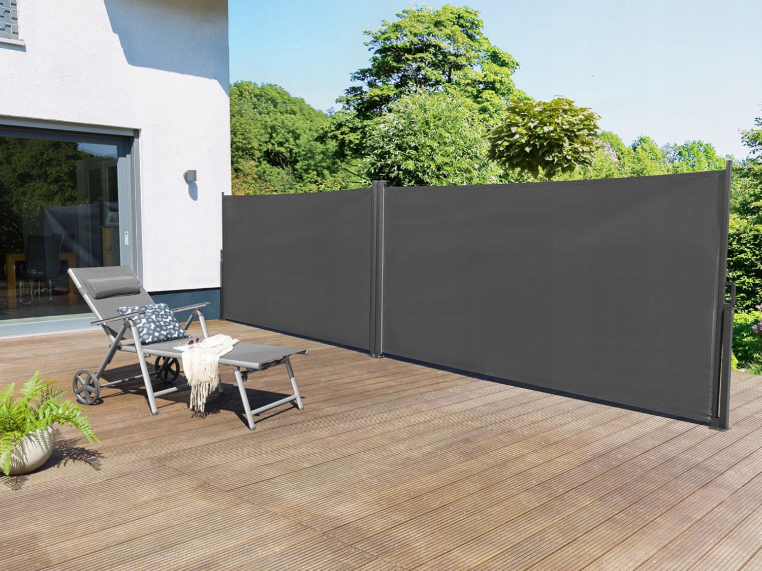 Довгий тент із кутовою функцією захищає від зору та вітру на терасі, балконі чи в саду, додаючи ще більше комфорту та приватності.