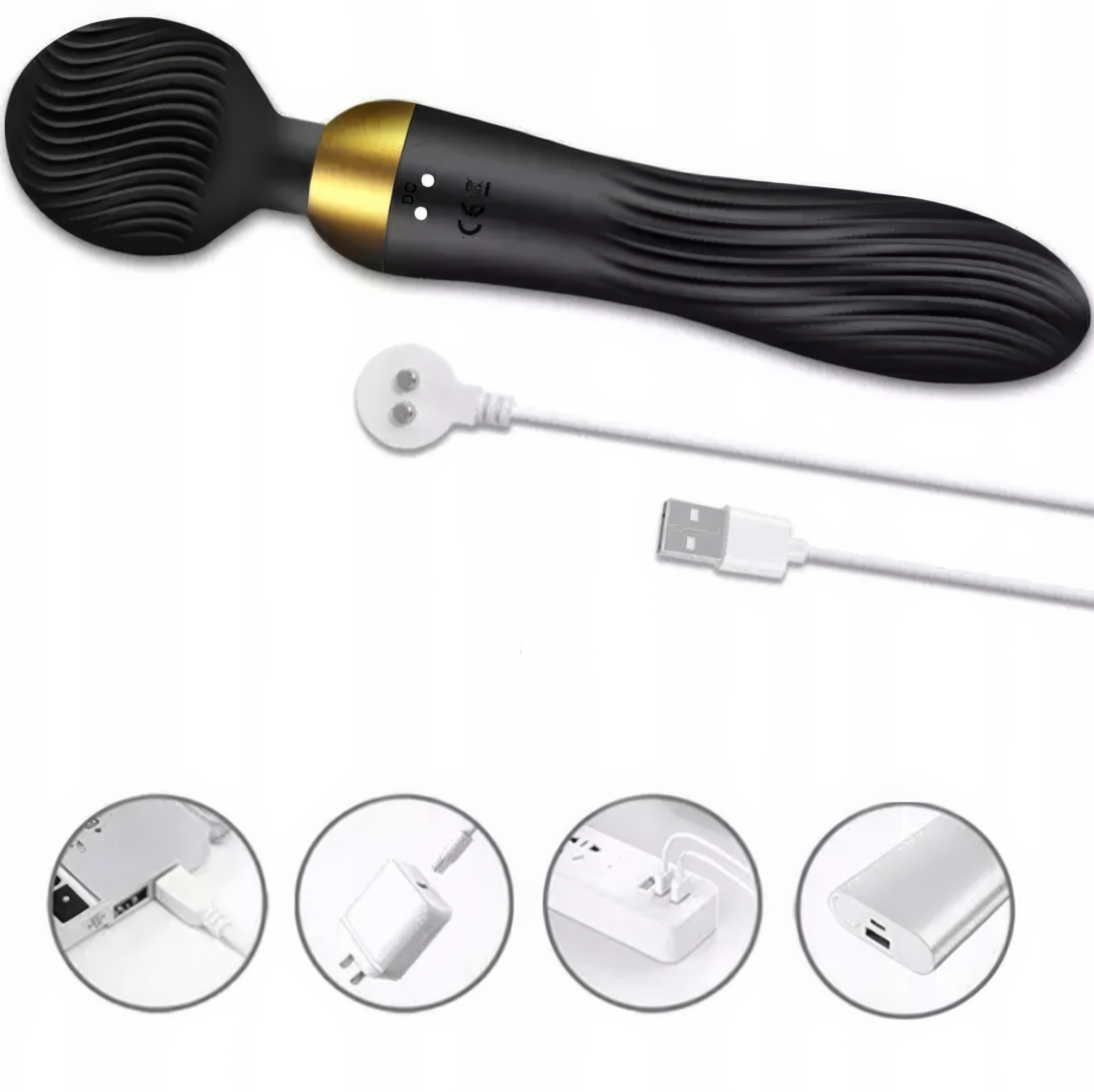 Поєднання елегантного чорного з ніжними золотистими елементами робить масажер надзвичайно стильним та ексклюзивним. Це гаджет, який порадує вас не тільки своєю функціональністю, а й зовнішнім виглядом.