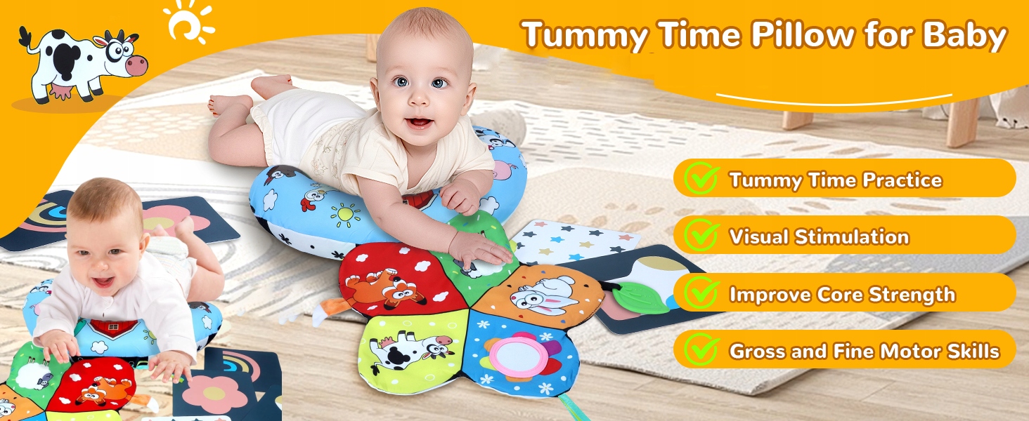 - Іграшка-подушка Tummy time забезпечує ідеальний комфорт і оптимальну підтримку для животика.