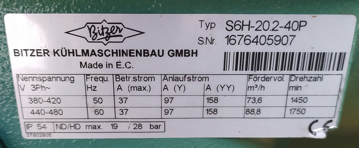Новий двоступеневий морозильний компресор Bitzer S6H-20.2-40P