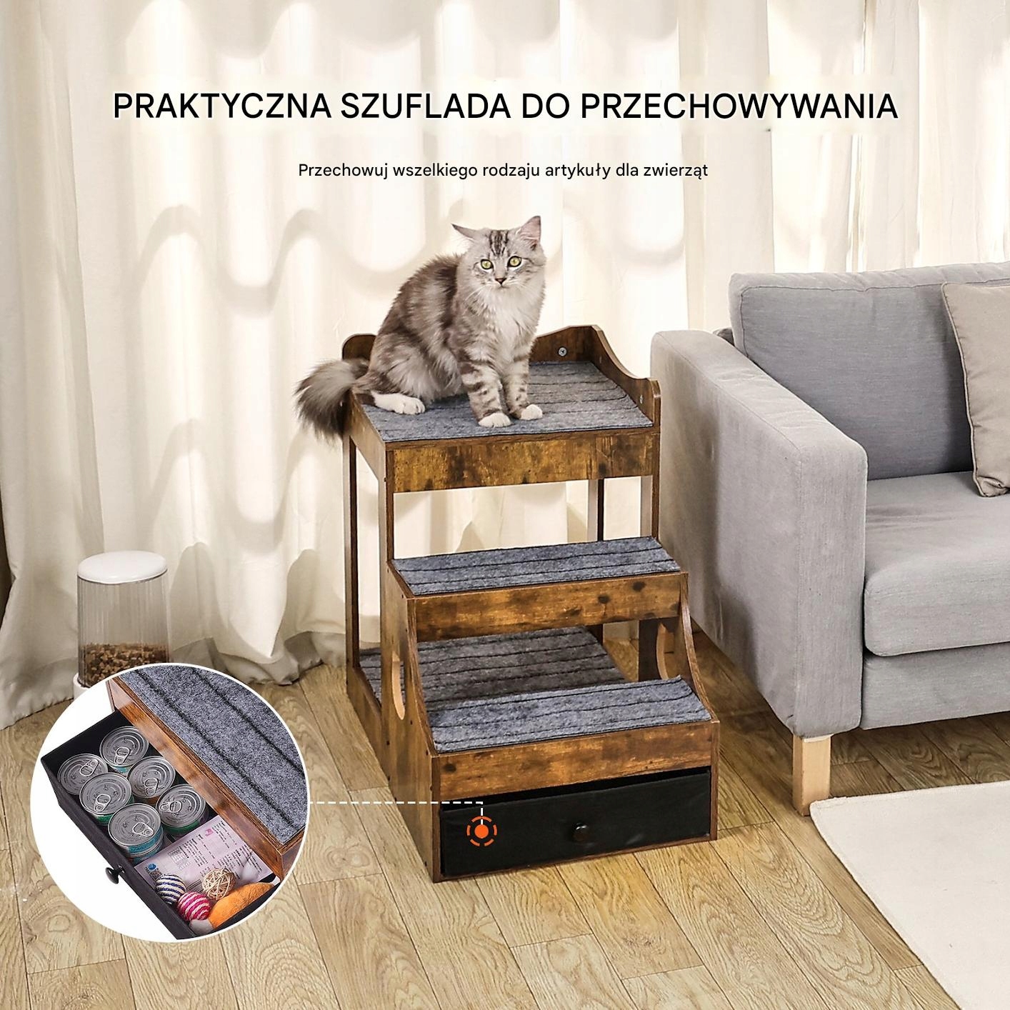 Поєднуючи дворівневе ліжко для тварин із драбиною, винуватець для тварин забезпечує як верхній, так і нижній простір для відпочинку, завдяки якому тварини можуть вибрати місце відпочинку. Він також може використовуватися одночасно для 2 або більше тварин, заощаджуючи місце. Сходи можна використовувати окремо - завдяки їй тварини можуть легко підніматися і спуститися, що мінімізує вплив частого стрибків на суглоби.