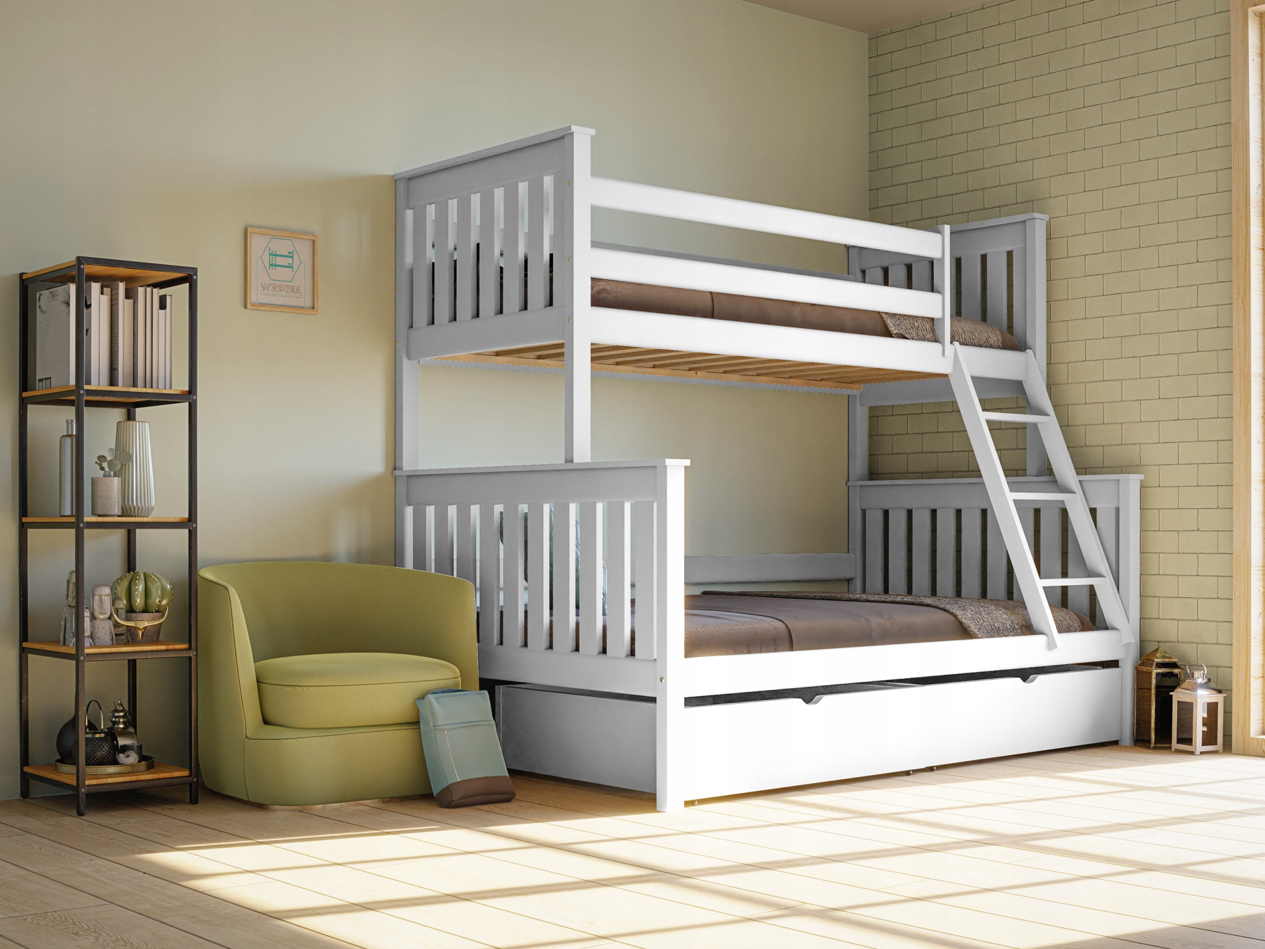 Ліжка з’єднані між собою за допомогою дуже товстих кілків, що унеможливлює щоб випадково розділити їх, навіть коли наші діти граються.