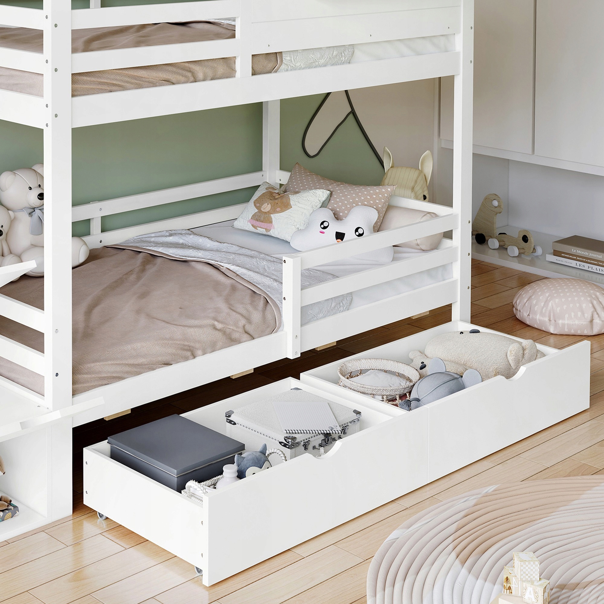 двоярусне ліжко, дерев’яне, сосна + mdf, сходи для зберігання, геніальний дизайн будинку з вікном, зберігання під ліжком, білий + натуральний, 90x200см