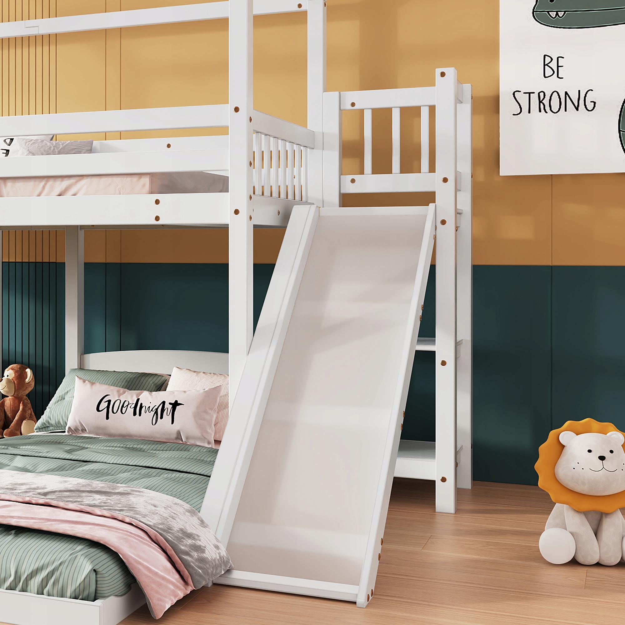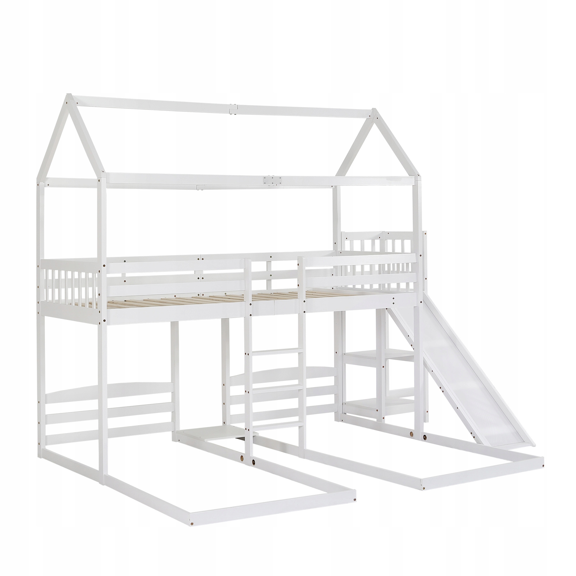 Двох'ярусне ліжко, ліжко-ліжко, дитяче ліжко, двоярусне ліжко з гіркою, відкрита полиця, триступенева драбина, розроблена з трьома положеннями спального місця, сосновий каркас, дитяче ліжко з дахом, сосна + МДФ, білий, 90x200см b>