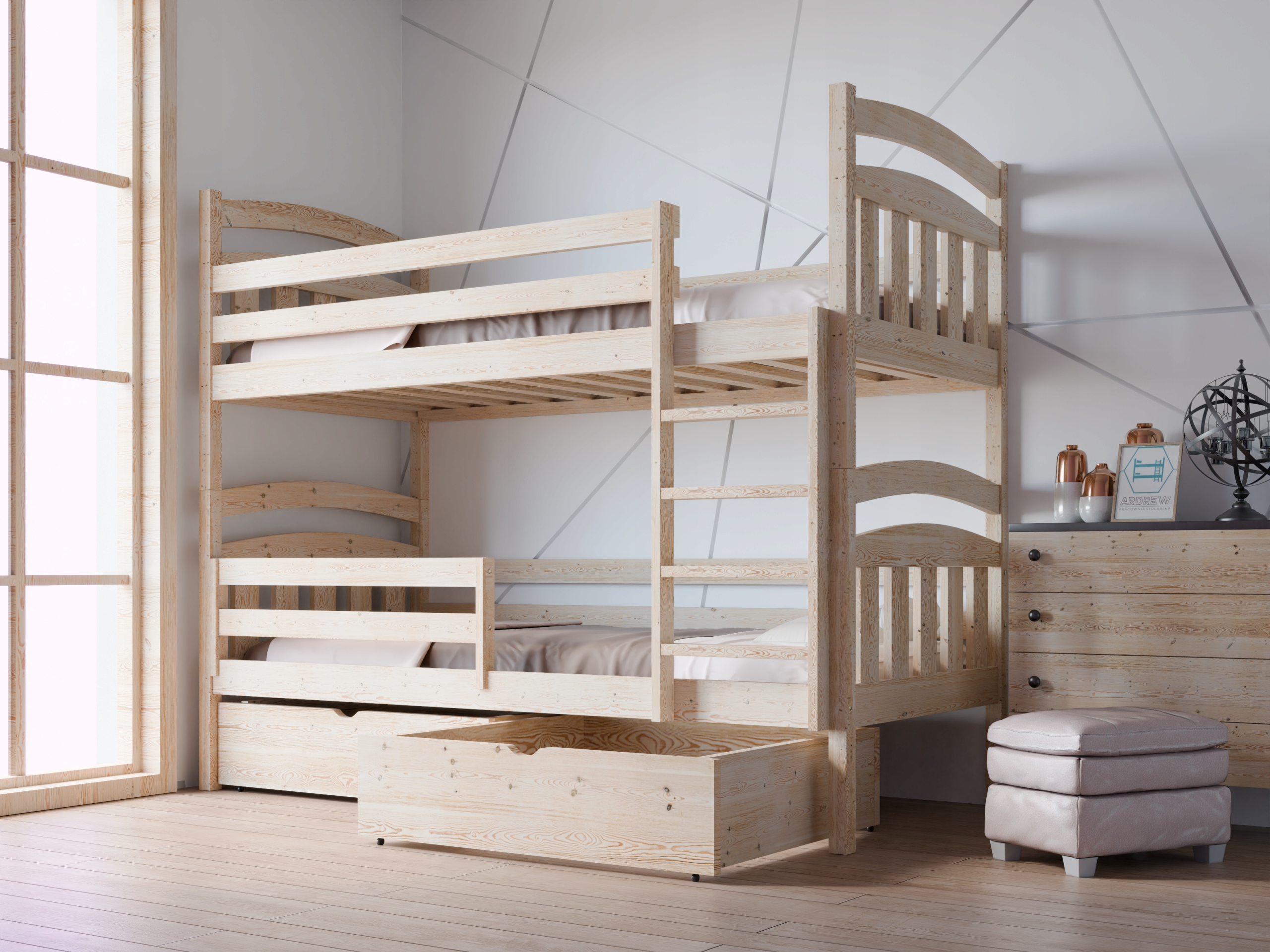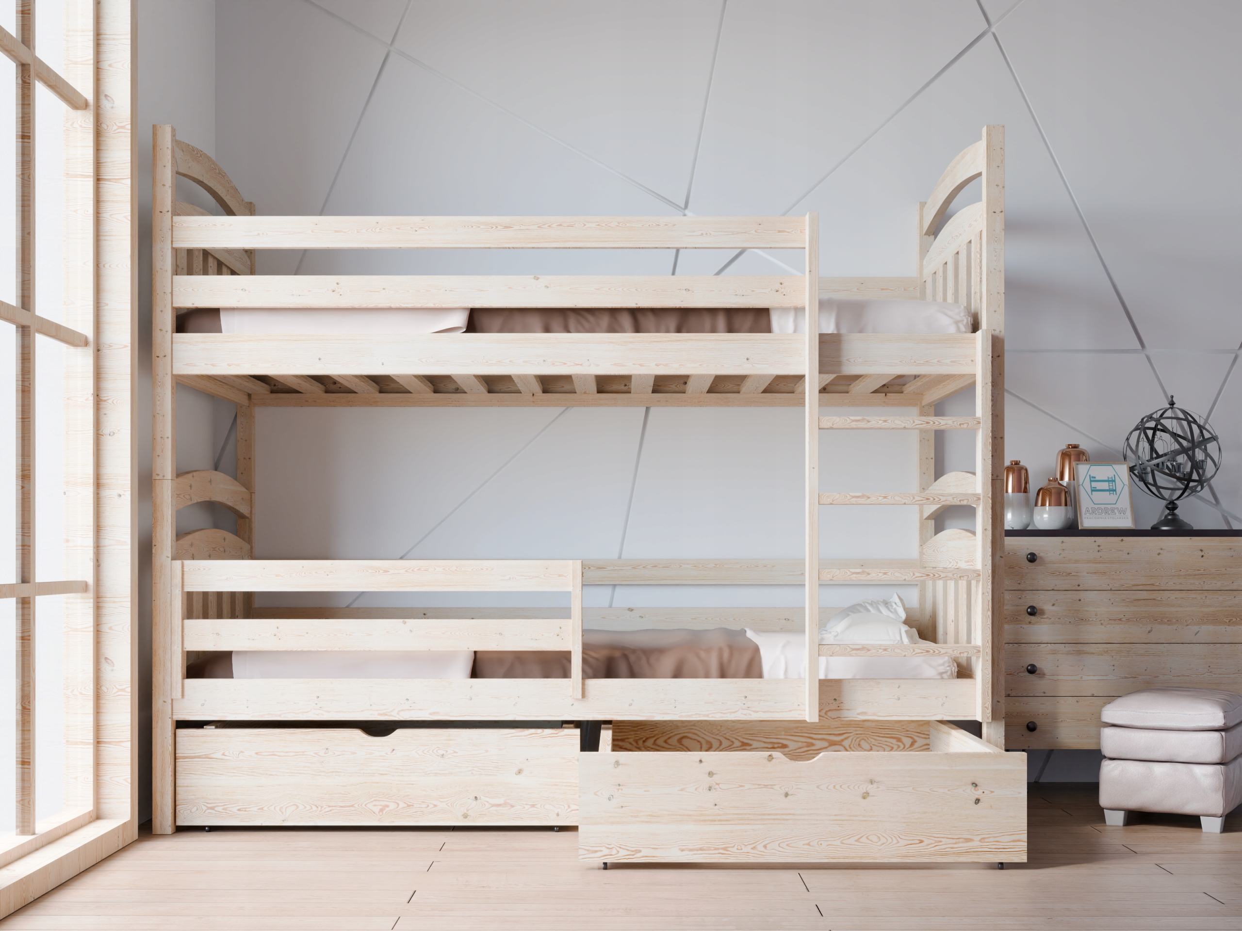 Конструкція з високоякісної соснової деревини, що робить наші ліжка стабільними та міцними.